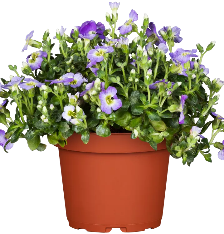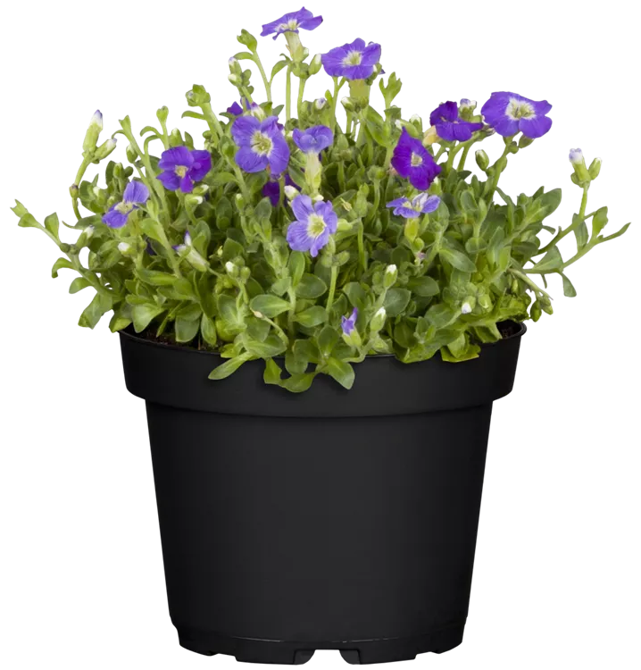 Die immergrünen Blätter des Garten-Blaukissens sind mittelgrün, eiförmig.
