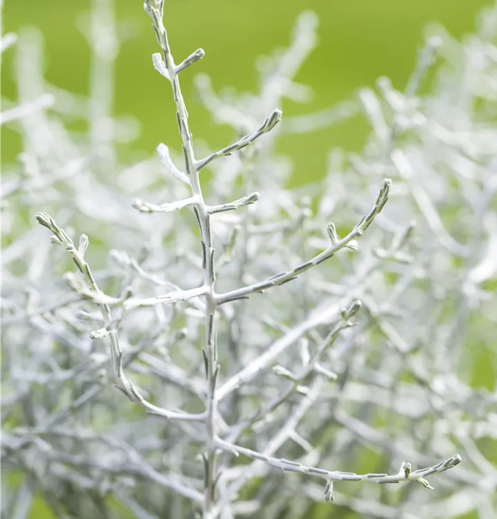 Das Silberkörbchen (Calocephalus brownii) besitzt dekorative, silbergraue Blätter. Ein sonniger bis halbschattiger Standort und ein durchlässiges Substrat werden bevorzugt.