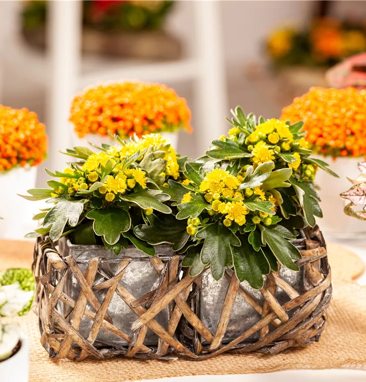 Die Pazifik-Margerite (Ajania pacifica) ist eine beliebte Pflanze für den Balkon, die während der gesamten Saison unzählige gelbe Blüten bildet. Die dunkelgrünen Blätter sind eiförmig. Ein sonniger Standort und ein durchlässiges Substrat werden bevorzugt.