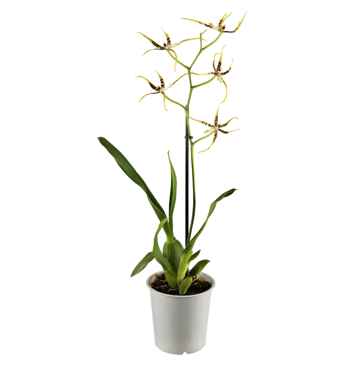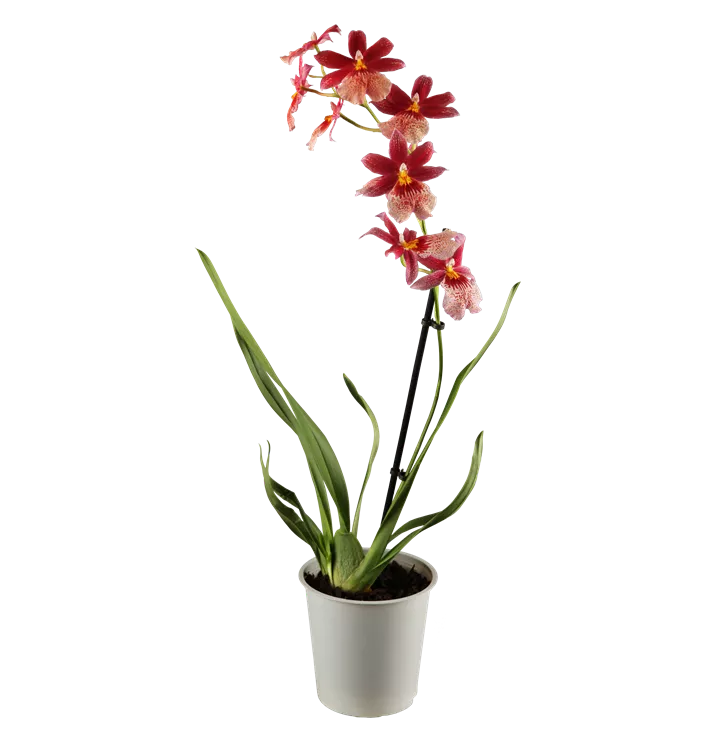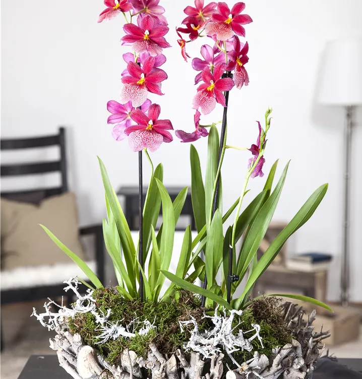 Die Cambria-Orchidee (Cambria) ist eine schöne, in rot, orange, gelb, weiß oder rosa blühende Orchidee. Ihre lippenförmigen Blüten sind sehr dekorativ und erscheinen in Wickel von Januar bis Dezember. Mit ihrem aufrechten Wuchs wird sie bis zu 65 cm hoch und 30 cm breit. Für das optimale Wachstum sorgen ein heller Standort sowie eine möglichst durchlässige und lockere Erde.