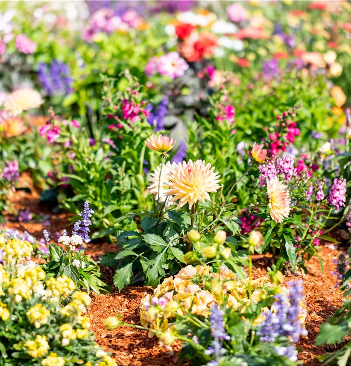 Die blauen, violetten, rosafarbenen, roten, orangefarbenen, gelben, weißen Blüten erscheinen von April bis Oktober.