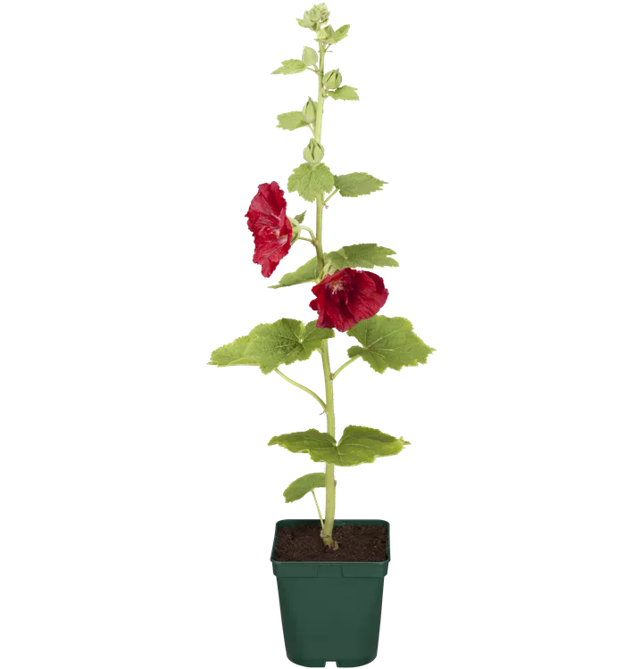 Die Stockrose (Alcea rosea) ist eine aufrechte, horstbildende Staude, die von Juli bis September gelbe, lilafarbene, pinke, rosafarbene oder weiße, schalenförmige, in Trauben angeordnete Blüten bildet. Ihre rundlichen, gelappten, Blätter sind mittelgrün. An einem sonnigen Standort mit durchlässigem Boden erreicht sie gewöhnlich eine Höhe von ca. 1,8 m und wird ca. 60 cm breit. Die Stockrose ist gut frostverträglich.
