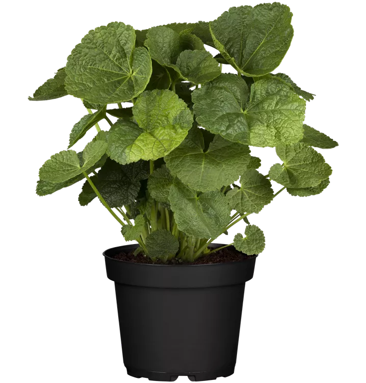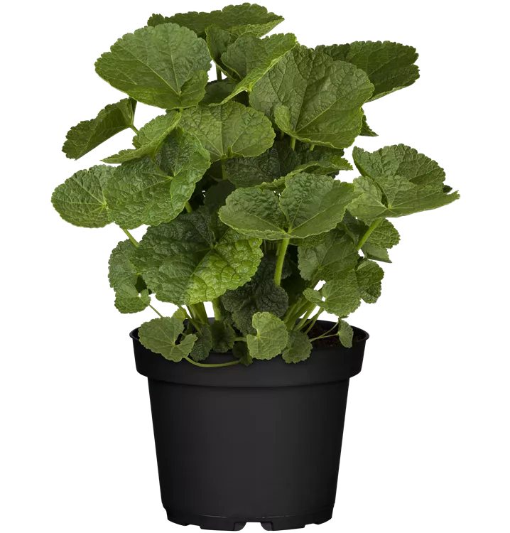 Die sommergrünen Blätter der Stockrose sind mittelgrün, rundlich, gelappt.