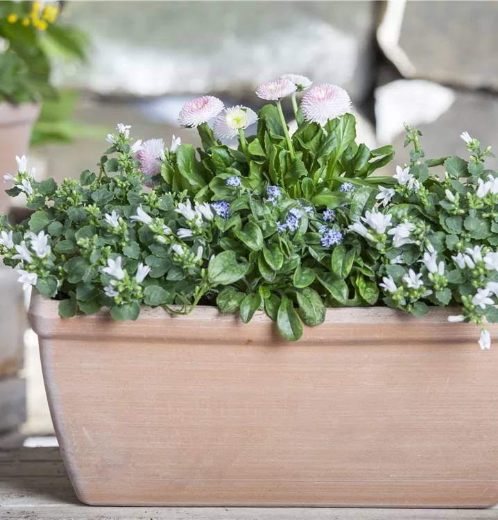 Die Hängepolster-Glockenblume setzt schöne Akzente gemeinsam mit: