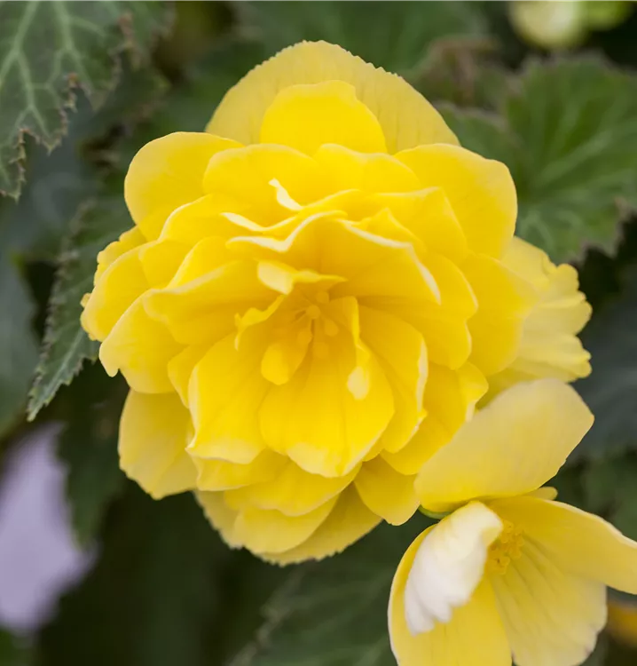 Die Blätter der Knollenbegonien'Non-Stop'® sind mittelgrün, lanzettlich, gekerbt.