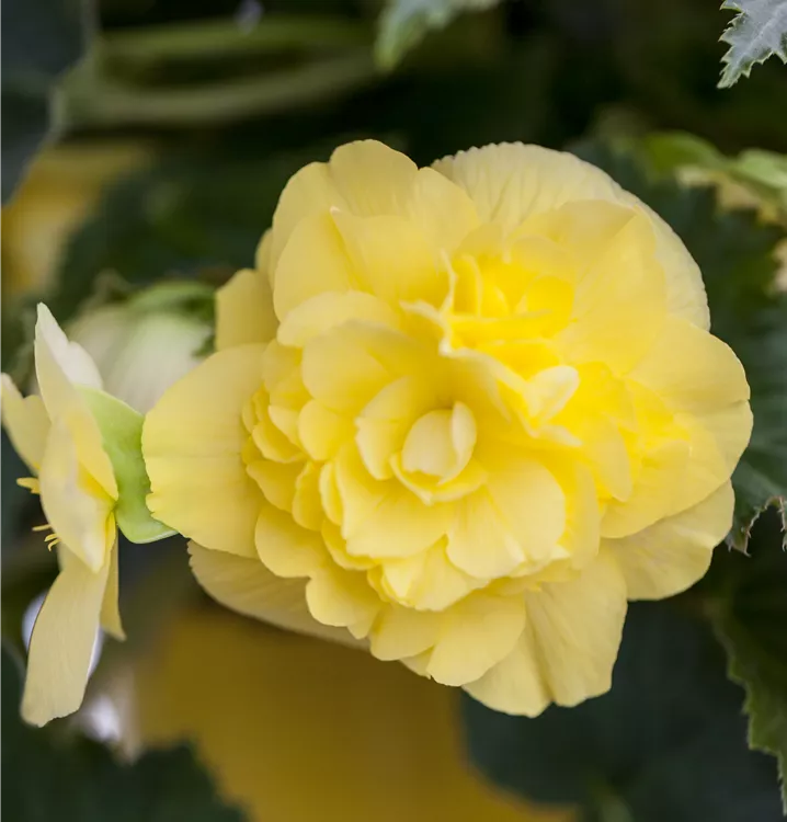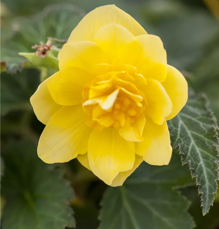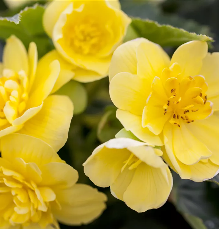 Die Knollenbegonien'Non-Stop'® (Begonia x tuberhybrida) bringt ansehnliche, gelbe, orangefarbene, rosafarbene, rote, weiße, gefüllte Blüten von April bis November hervor. Bevorzugt wird ein durchlässiger, nährstoffreicher Boden in halbschattiger Lage. Die buschige, kugelförmige Pflanze erreicht gewöhnlich eine Höhe von 20 - 30 cm und wird bis zu 30 cm breit.