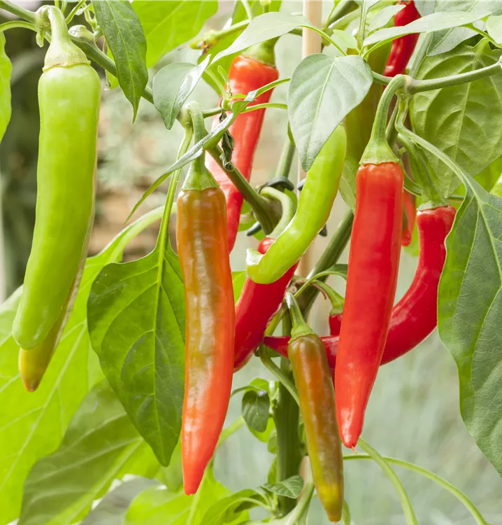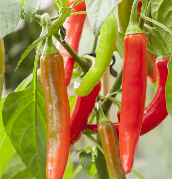 Die Chili Pick a Hot® (Capsicum annuum) bildet Früchte, die sehr scharf schmecken und bereits ab Juli geerntet werden können. Für das optimale Wachstum der Chili Pick a Hot® werden ein sonniger Standort und durchlässiger, nährstoffreicher Boden benötigt.