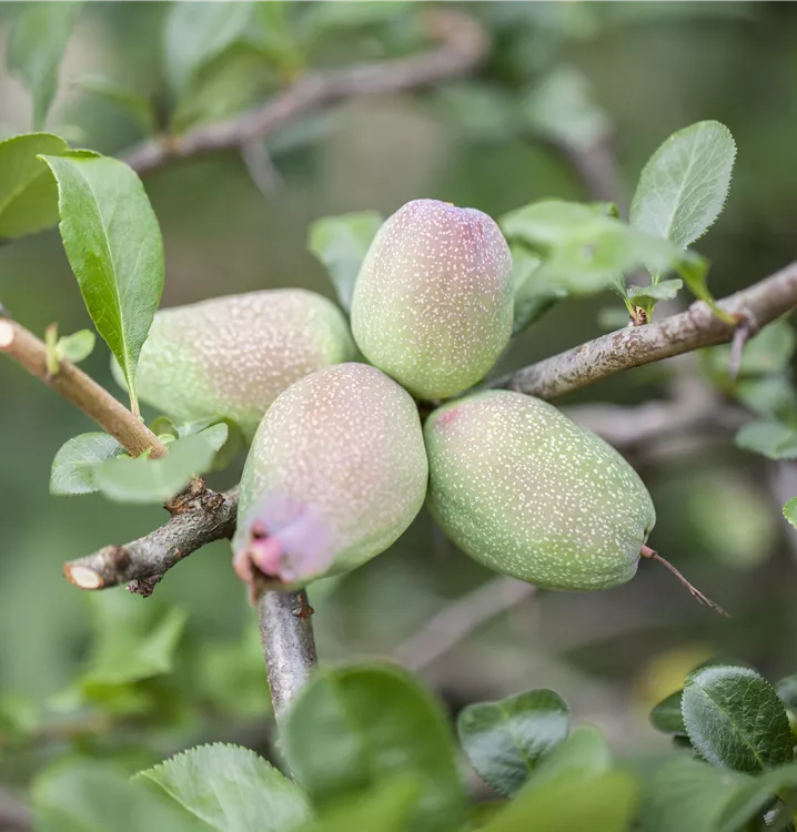 Besonders dekorativ sind die gelben, orangefarbenen, birnenförmigen Früchte von Chaenomeles japonica. Diese erscheinen ab September.