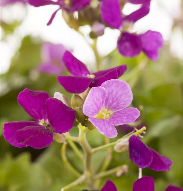 Arabis caucasica bildet radförmige, in Trauben angeordnete, weiße, rosafarbene, rote Blüten ab April.