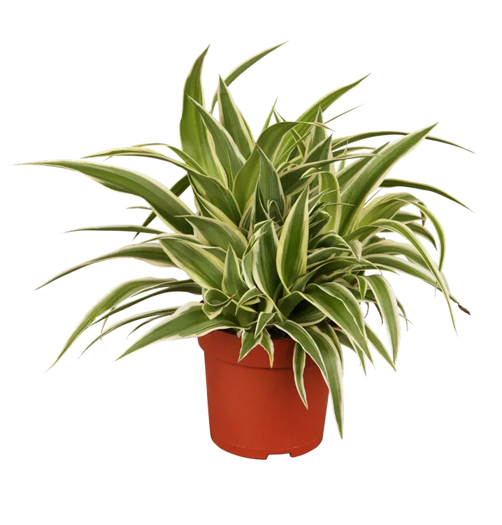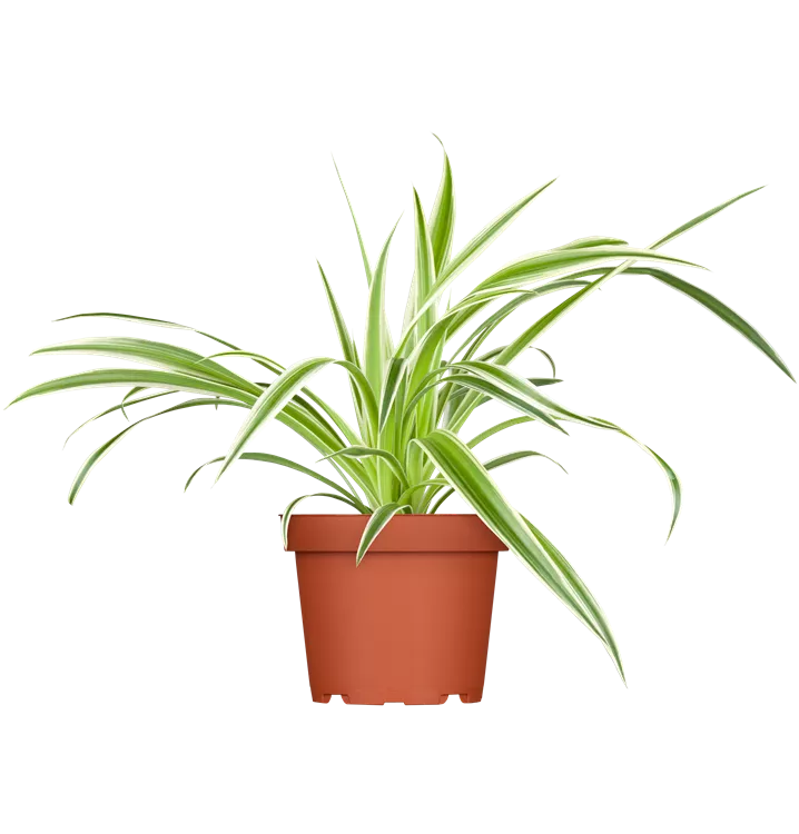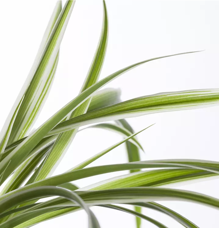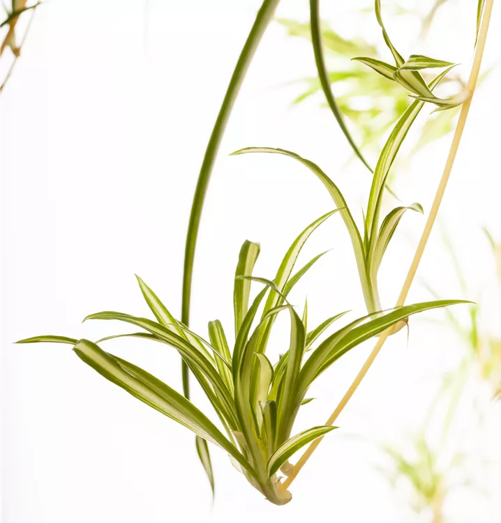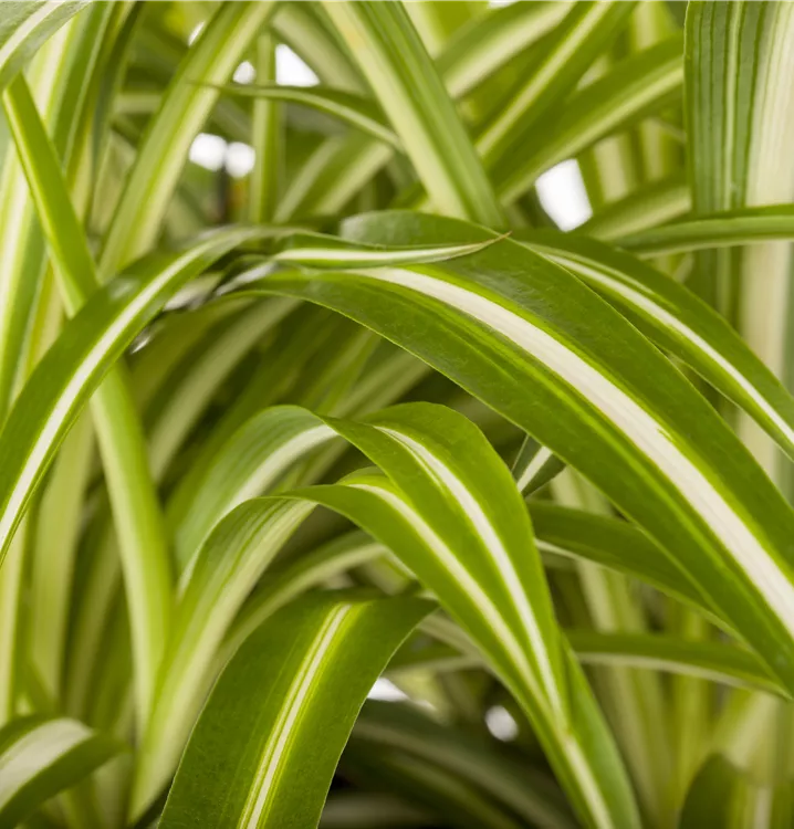 Die Grünlilie (Chlorophytum comosum) ist eine Pflanze mit dekorativen, grün-weißen Blättern. Sie sind lineal und ganzrandig. Bei guten Bedingungen bringt sie von Januar bis Dezember weiße, sternförmige Blüten hervor. Diese überhängende Pflanze gedeiht am besten an einem hellen Standort.