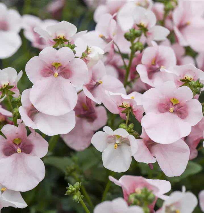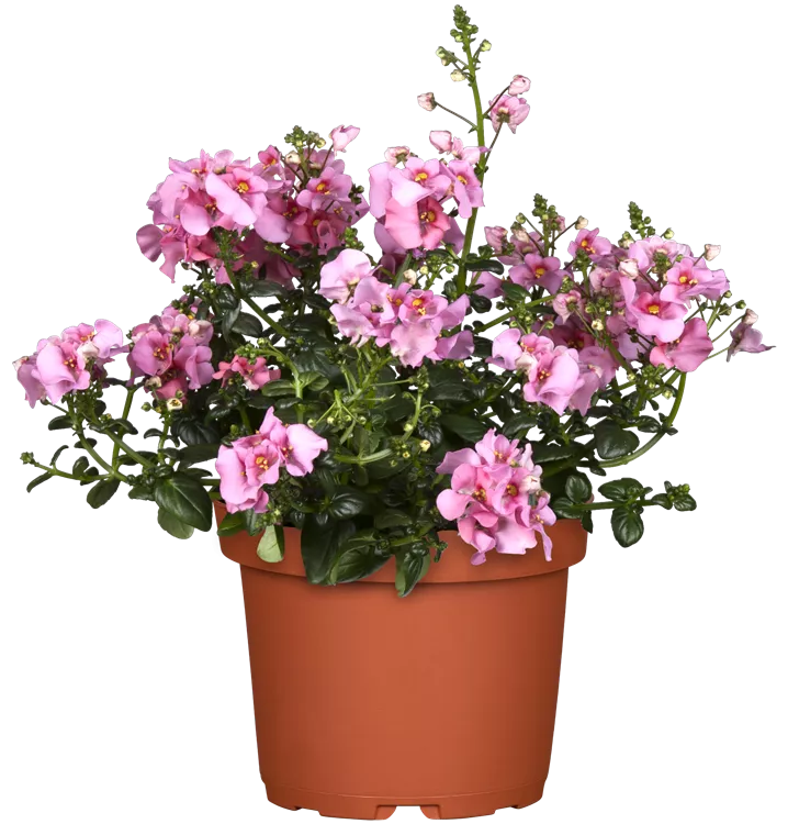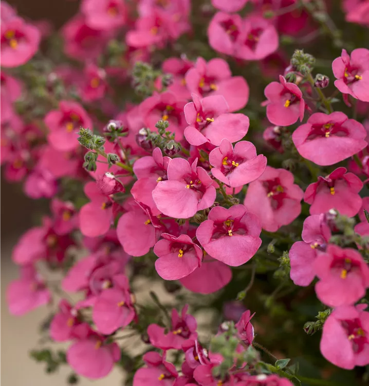 Der Elfensporn (Diascia) ist eine beliebte Pflanze für den Balkon, die während der gesamten Saison unzählige weiße, rosafarbene oder rote Blüten bildet. Ein sonniger bis halbschattiger Standort und ein durchlässiges Substrat werden bevorzugt.