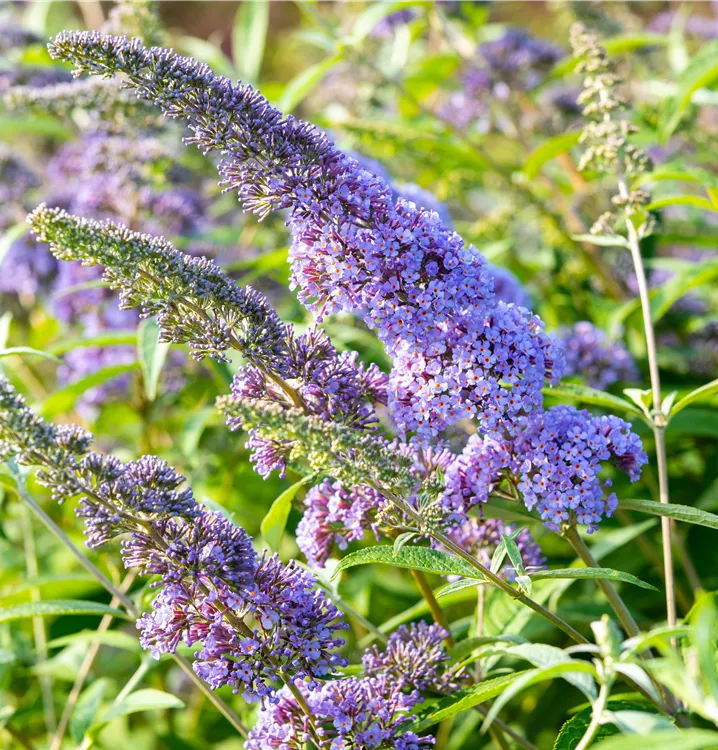 Die blauvioletten Blüten des Sommerflieder 'Empire Blue' erscheinen in Rispen von Juli bis Oktober. Diese werden etwa 20 - 30 cm groß und sind stark duftend.