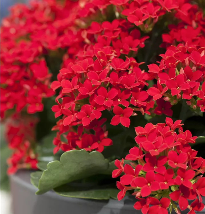 Die roten, violetten, weißen, rosafarbenen, sternförmigen Blüten des Flammenden Käthchen erscheinen in Dolden von Februar bis Juni.