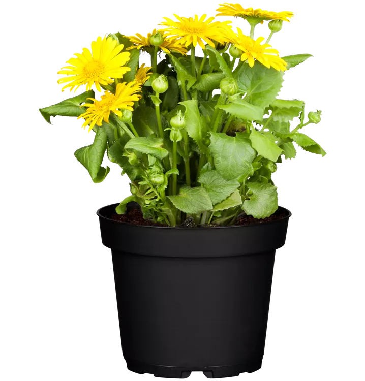 Doronicum orientale bildet körbchenartige, gelbe Blüten ab April.