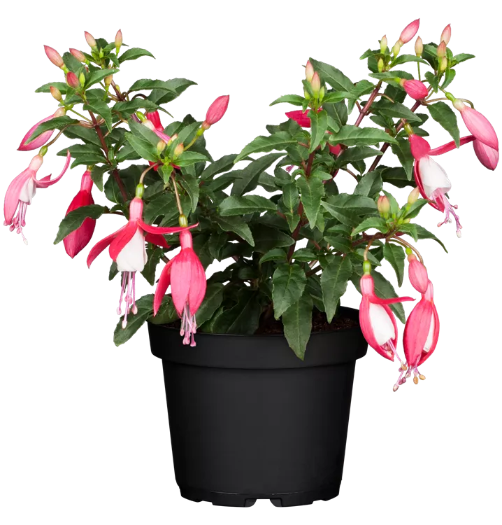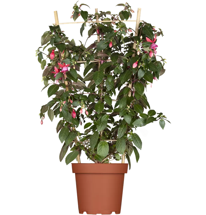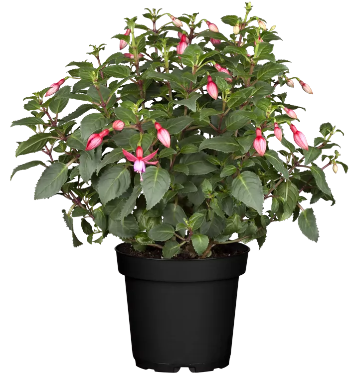 Fuchsia Hybride kann eine Höhe von 40 - 50 cm und eine Breite von 30 - 40 cm erreichen.