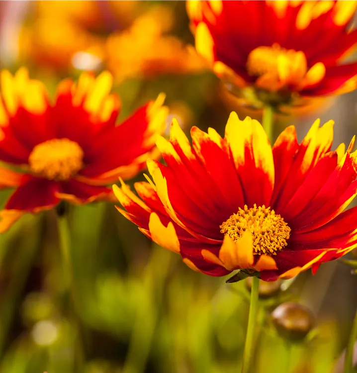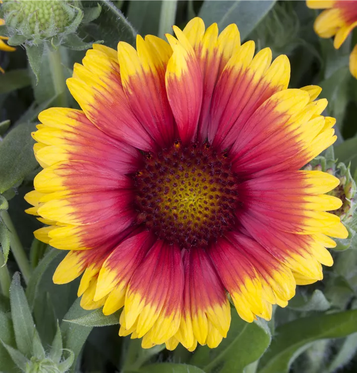 Gaillardia aristata bildet gelb-rote Blüten ab Juli.