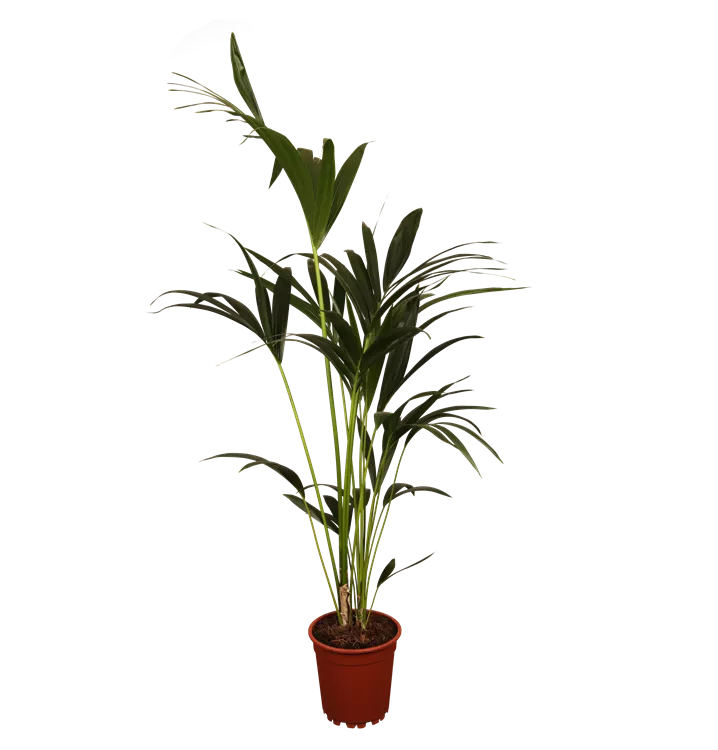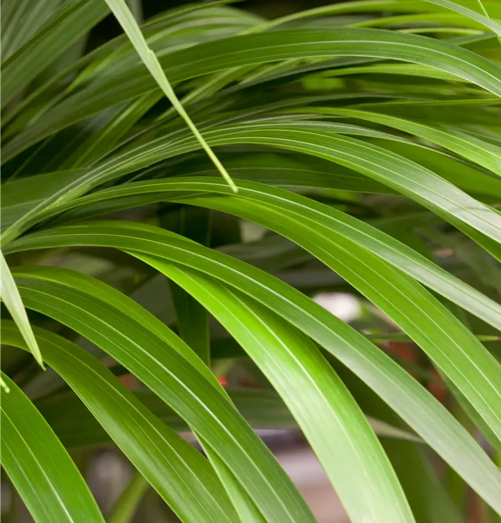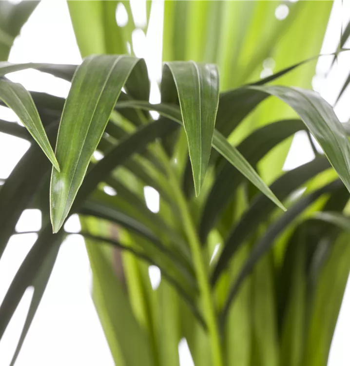 Die Kentiapalme (Howea forsteriana) trägt dunkelgrüne, tief geschlitzte Blätter. Diese aufrechte Pflanze gedeiht am besten an einem halbschattigen Standort.