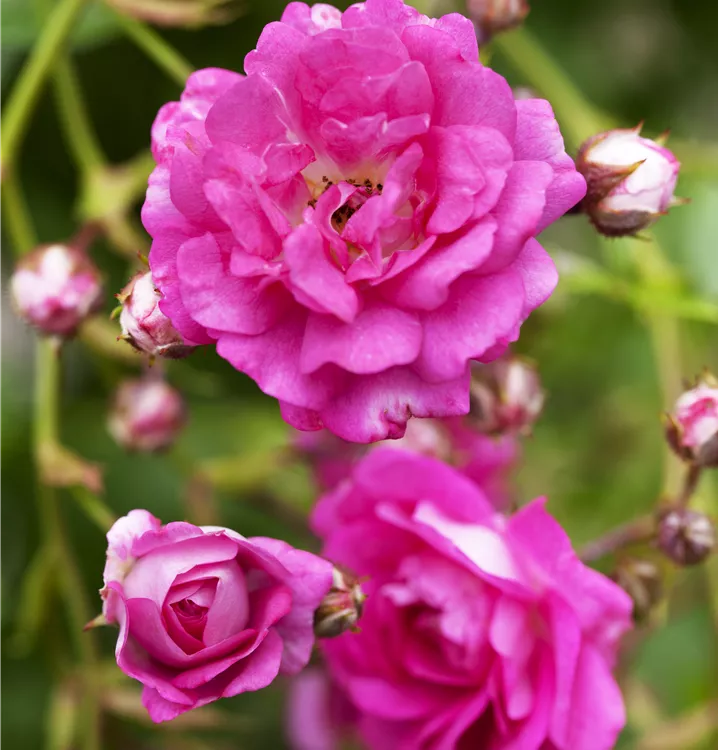 Die Kletterrose (Rosa) ist eine reichblühende Rose, die im Garten eine besondere Rolle spielt. Die zahlreichen Blüten sind gelb, rosa, rot oder weiß und erscheinen von Juni bis Oktober. Ihr wunderbarer Duft entfaltet sich besonders an sonnigen, warmen Tagen. Mit dem kletternden Wuchs wird dieses Gehölz bis zu 4 m hoch.