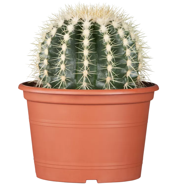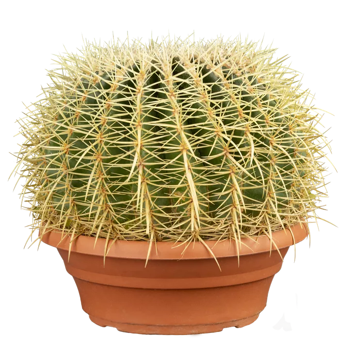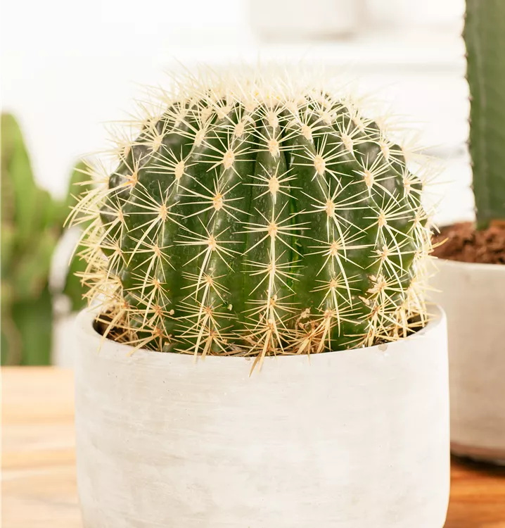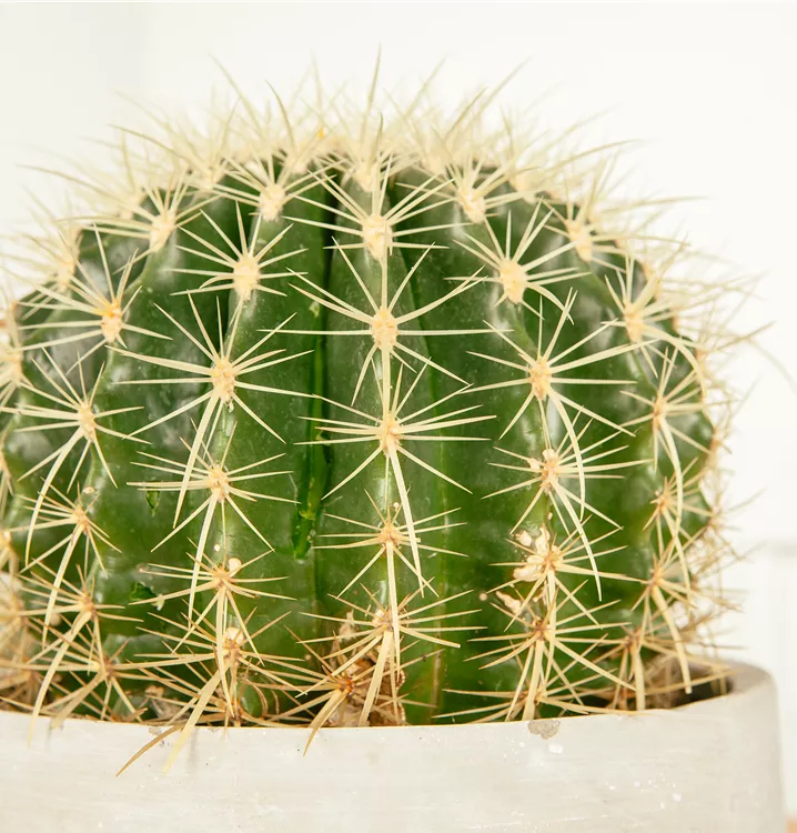 Die Triebe von Echinocactus grusonii sind bedornt.