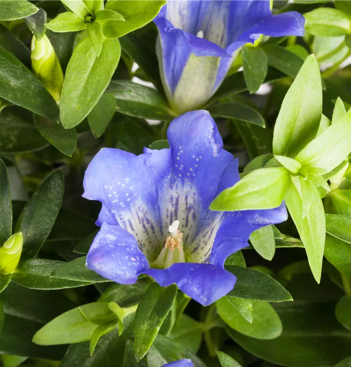 Der Raue Enzian (Gentiana scabra) ist eine mattenbildende Staude, die von Juli bis Oktober blaue oder weiße Blüten bildet. An einem sonnigen bis halbschattigen Standort mit kalkfreiem Boden erreicht er gewöhnlich eine Höhe von ca. 20 cm und wird ca. 30 cm breit. Der Raue Enzian ist gut frostverträglich.