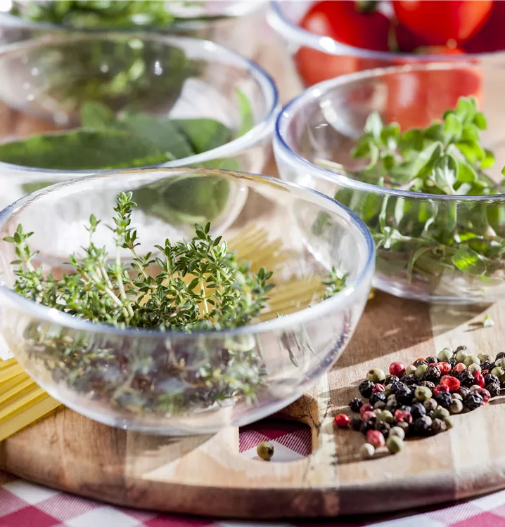 Zu viel Dünger schadet dem Kräuteraroma! In Pflanzgefäßen sind Kräuter gut versorgt, wenn sie einmal im Frühjahr Kräuterdünger bekommen. Im Garten ausgepflanzt, genügt eine Kompostgabe zum Saisonstart.