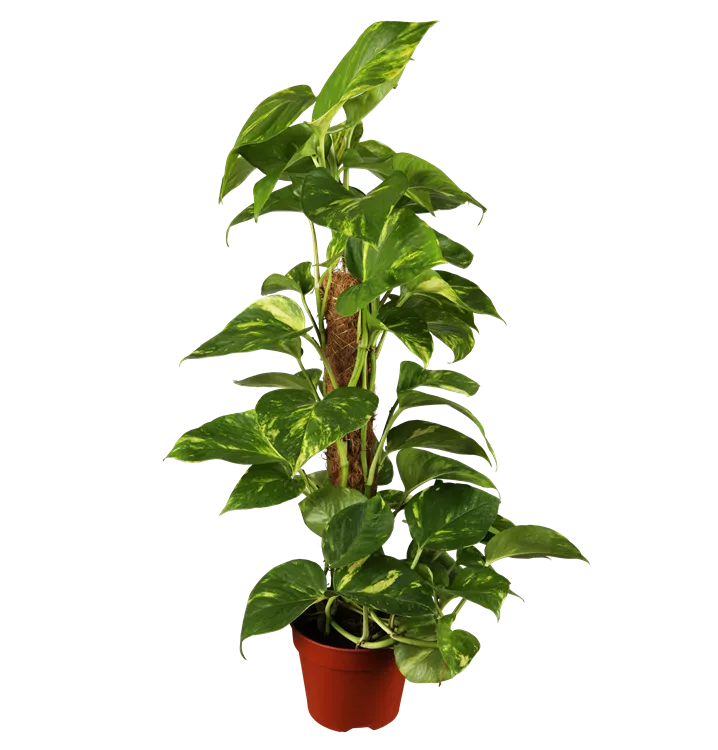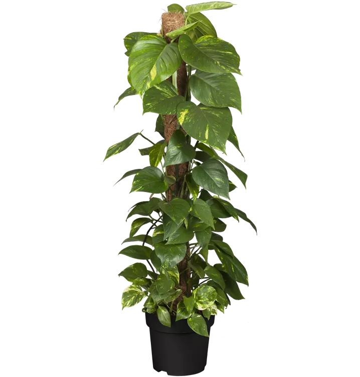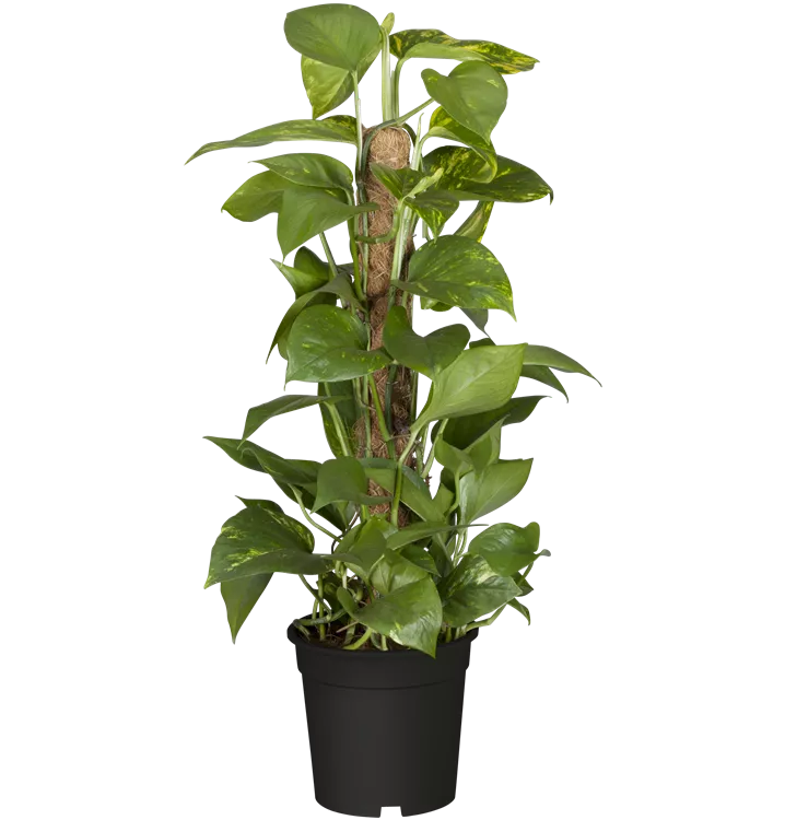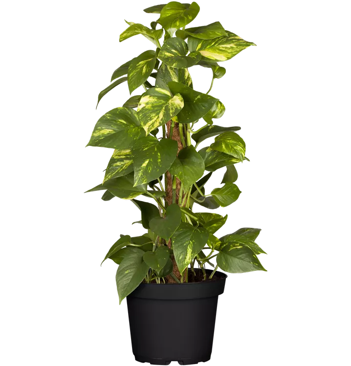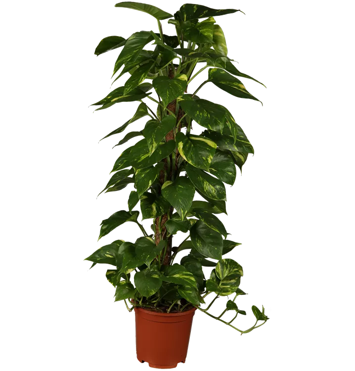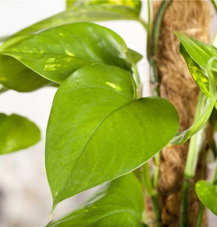 Die immergrünen Blätter der Goldene Efeutute sind mehrfarbig, herzförmig. Diese sind etwa 10 - 20 cm groß.