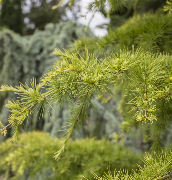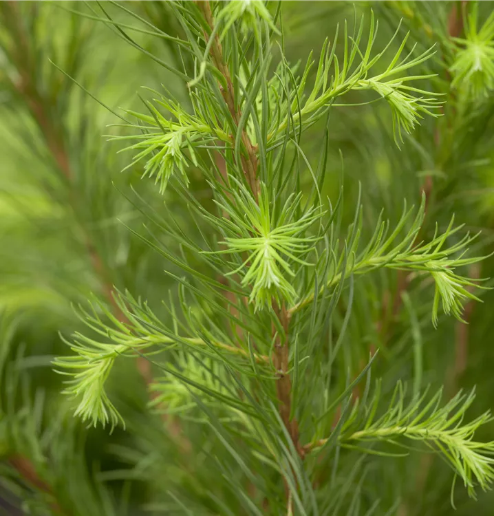 Die Europäische Lärche ist sommergrün. Ihre Nadeln sindhellgrün. Europäische Lärche zeigt sich leuchtend goldgelb im Herbst.