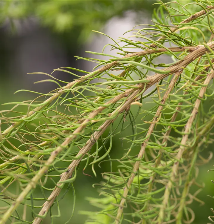 Rot-braun, schuppenförmige Rinde macht diese Pflanze zu einem Blickfang in jedem Garten.