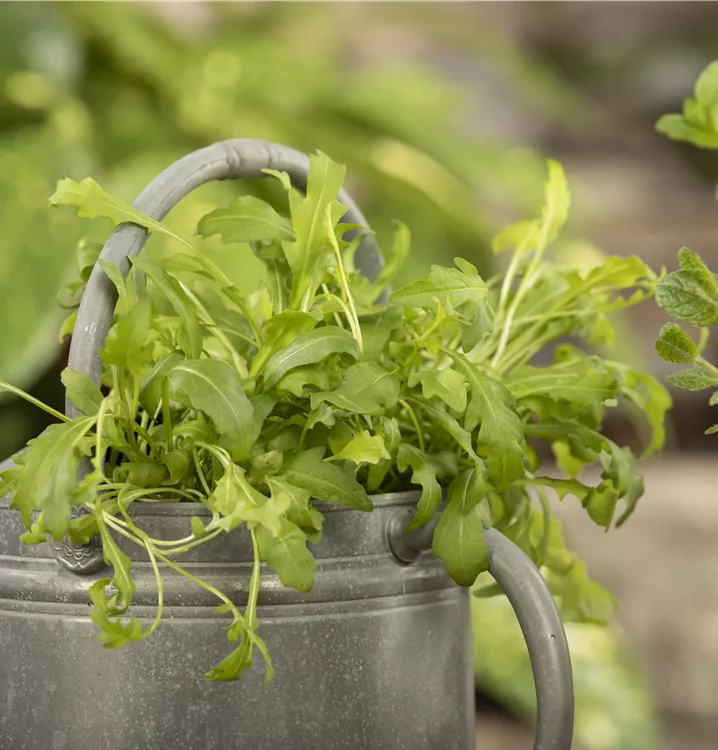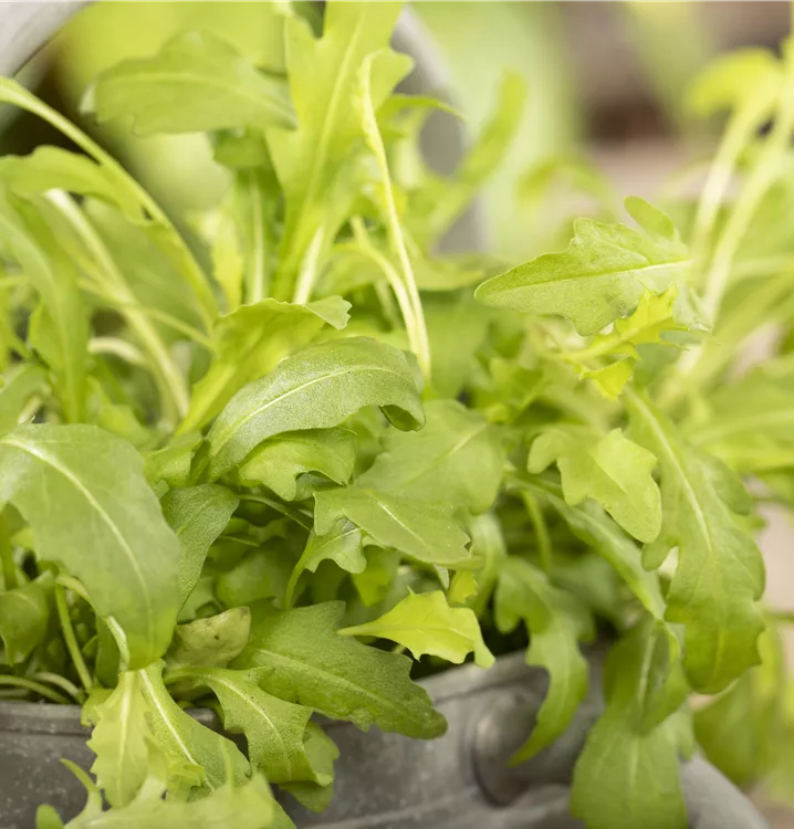 Der Rucola (Eruca sativa) ist eine würzig, nussig schmeckende Gemüsepflanze. Seine Blätter können geerntet werden, sobald er ca. 20 cm erreicht hat. Für das optimale Wachstum des Rucolas werden ein sonniger Standort und durchlässiger, nährstoffreicher Boden benötigt.