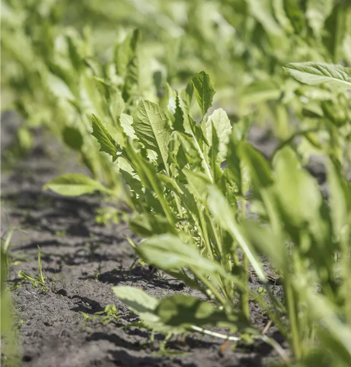 Zum Verzehr geeignet. Die dunkelgrünen Blätter überzeugen mit würzigem, nussigem Geschmack.
