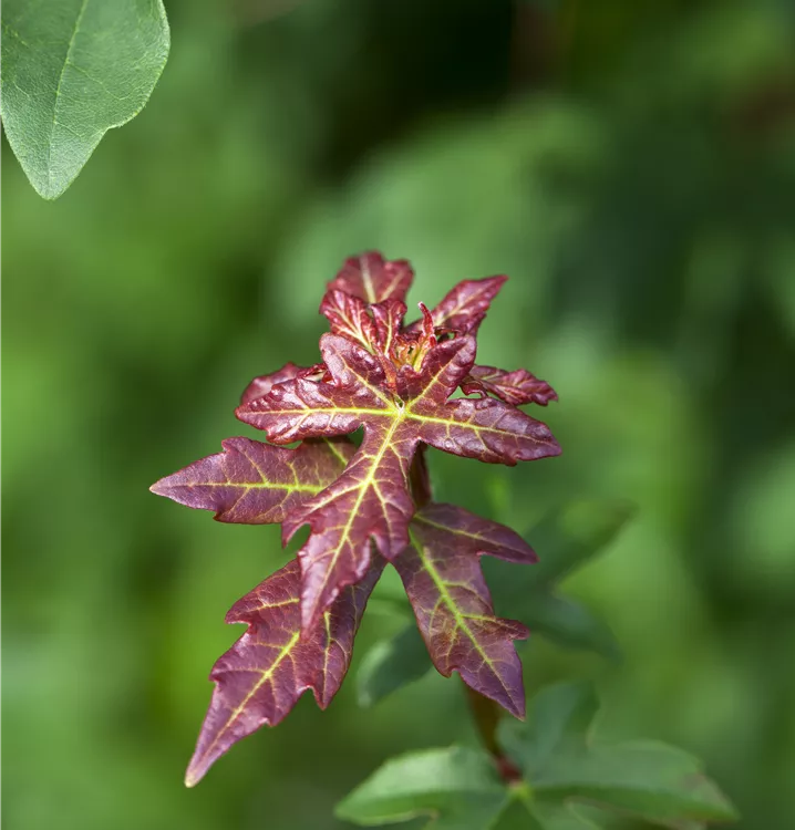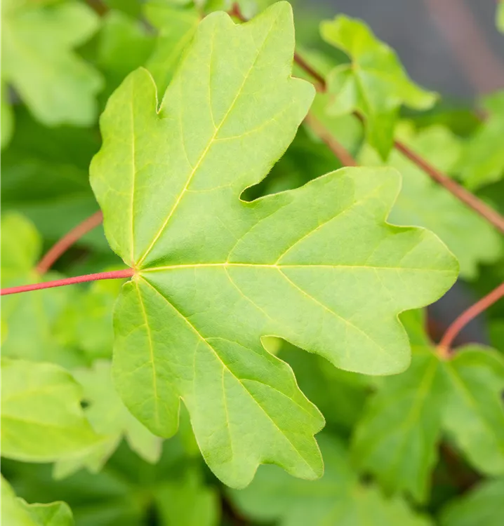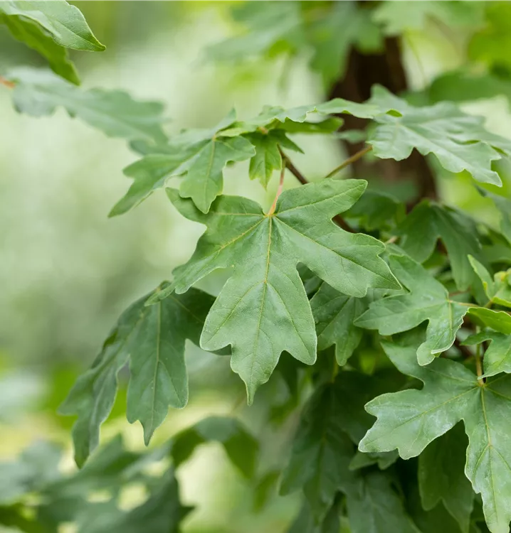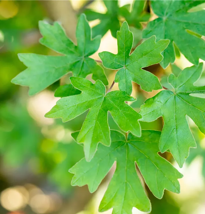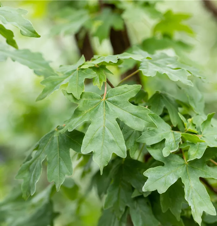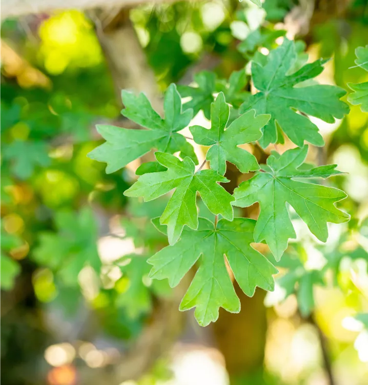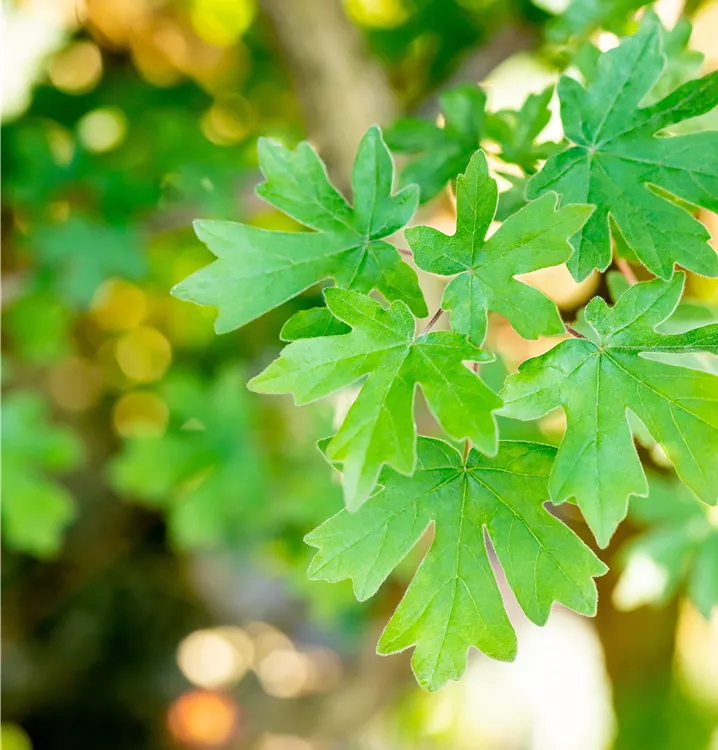 Die sommergrünen Blätter des Feldahorns sind dunkelgrün, gegenständig, gelappt. Diese sind etwa 5 - 10 cm groß. Feldahorn zeigt sich leuchtend orangegelb im Herbst.