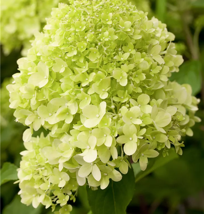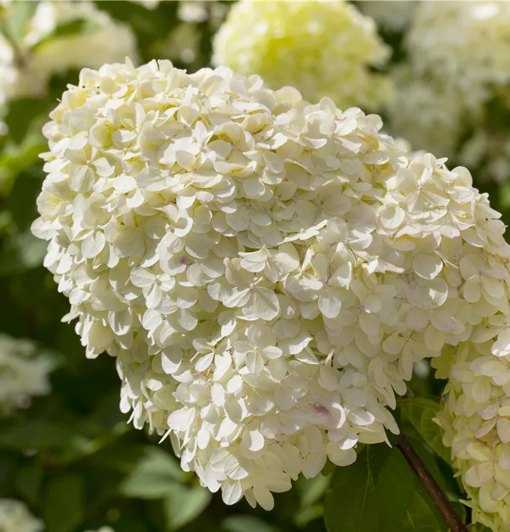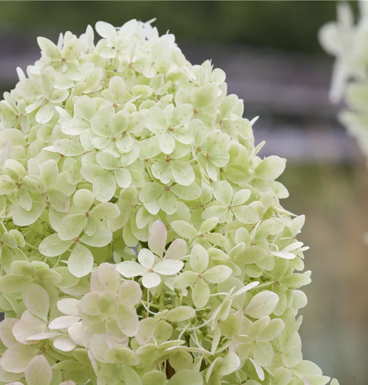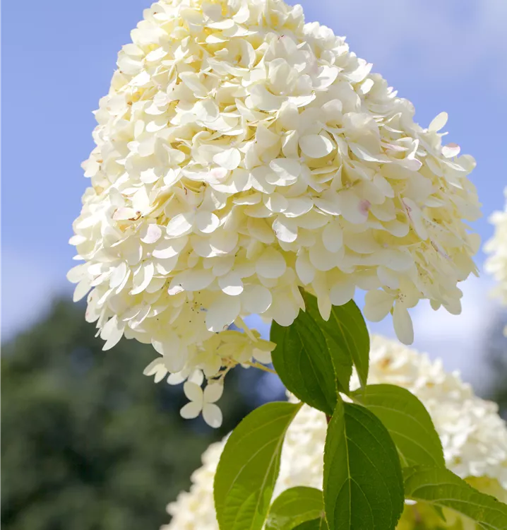 Die weißen Blüten der Rispenhortensie 'Limelight'(s) erscheinen in Rispen von August bis Oktober. Diese sind angenehm duftend.