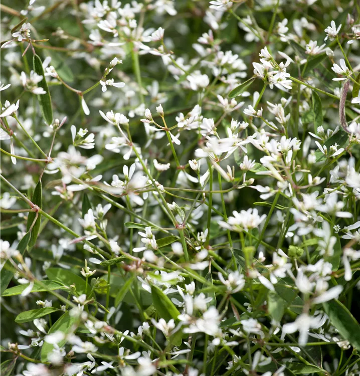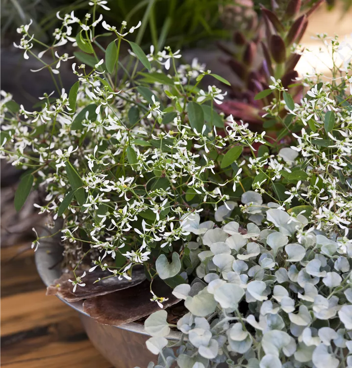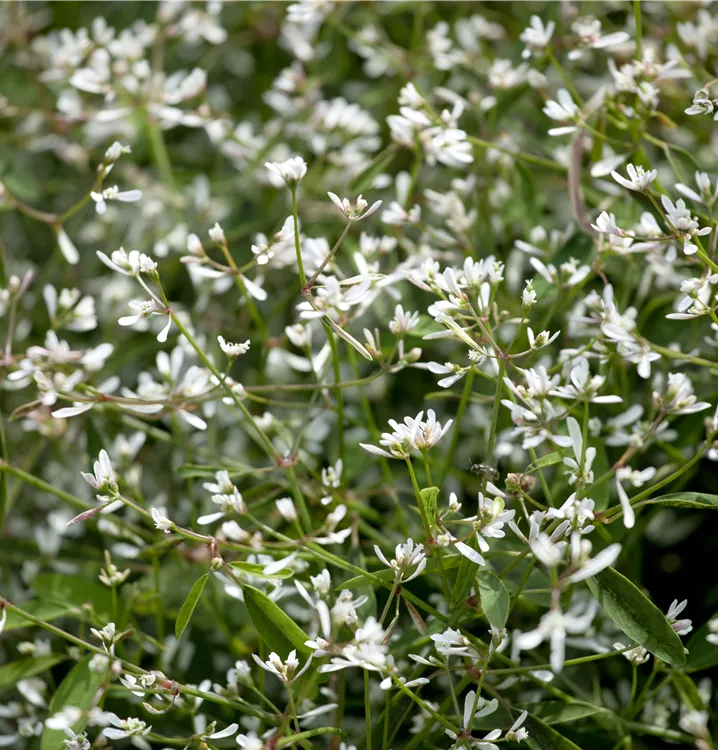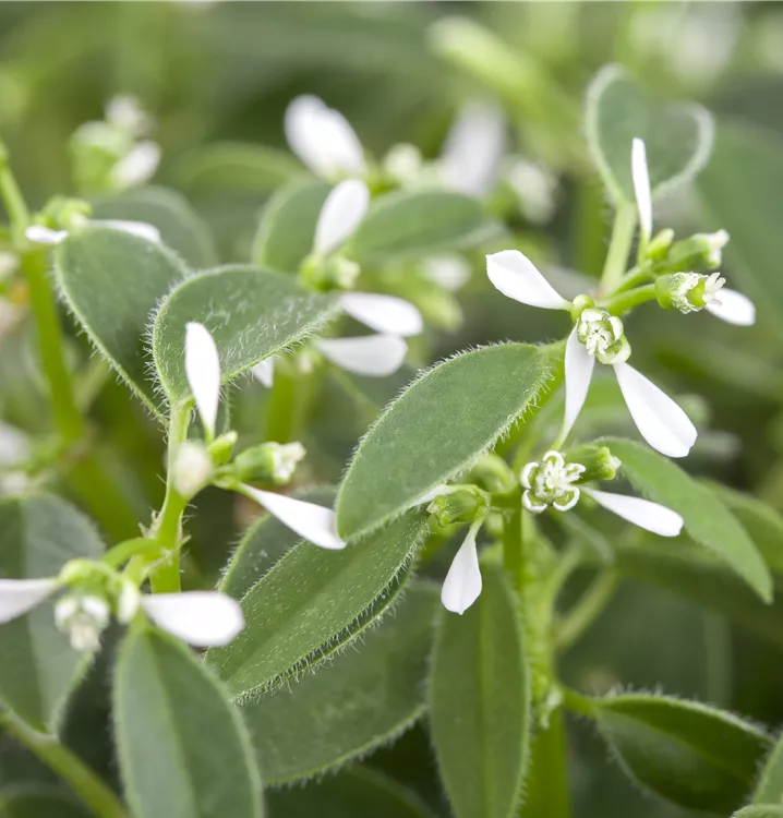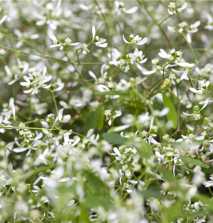 Die Euphorbie (Euphorbia hypericifolia) ist eine beliebte Pflanze für den Balkon, die während der gesamten Saison unzählige weiße Blüten bildet. Ein sonniger bis halbschattiger Standort und ein durchlässiges Substrat werden bevorzugt.