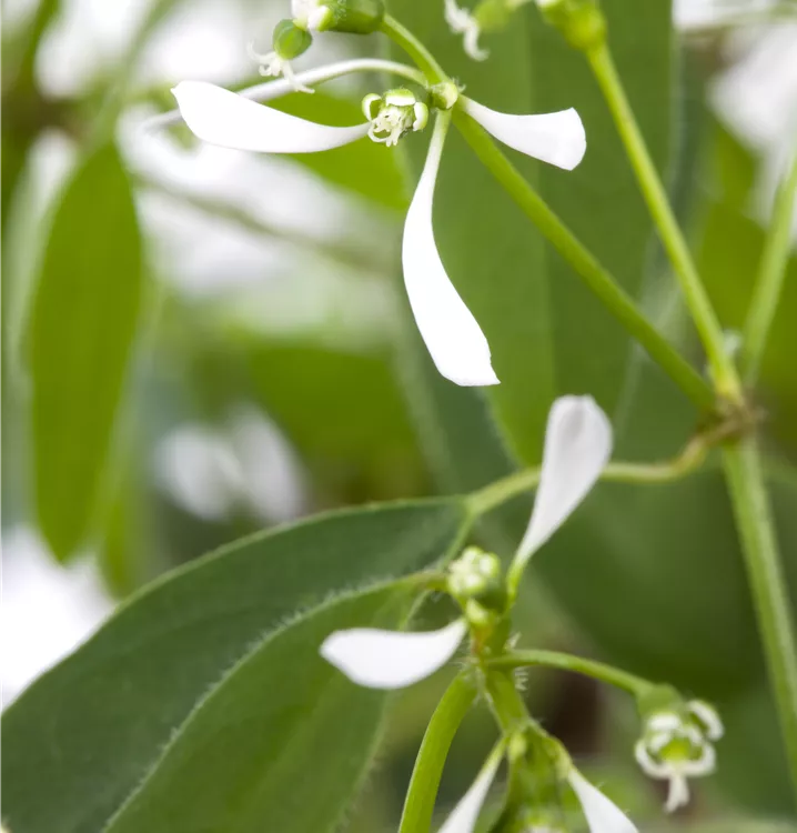 Die weißen Blüten erscheinen von Mai bis September.
