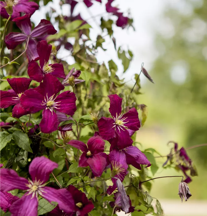 Großblumige Waldrebe ist ein rankend wachsende Kletterpflanze, welche eine Höhe von 3 - 4 m und eine Breite von 0,5 - 1 m erreichen kann.