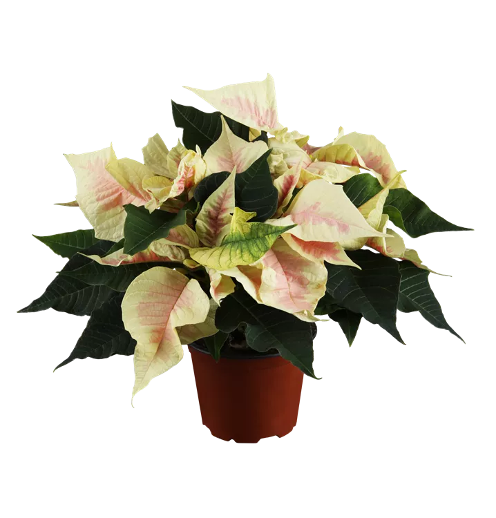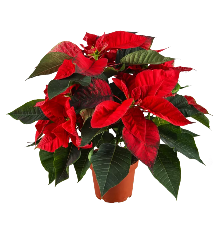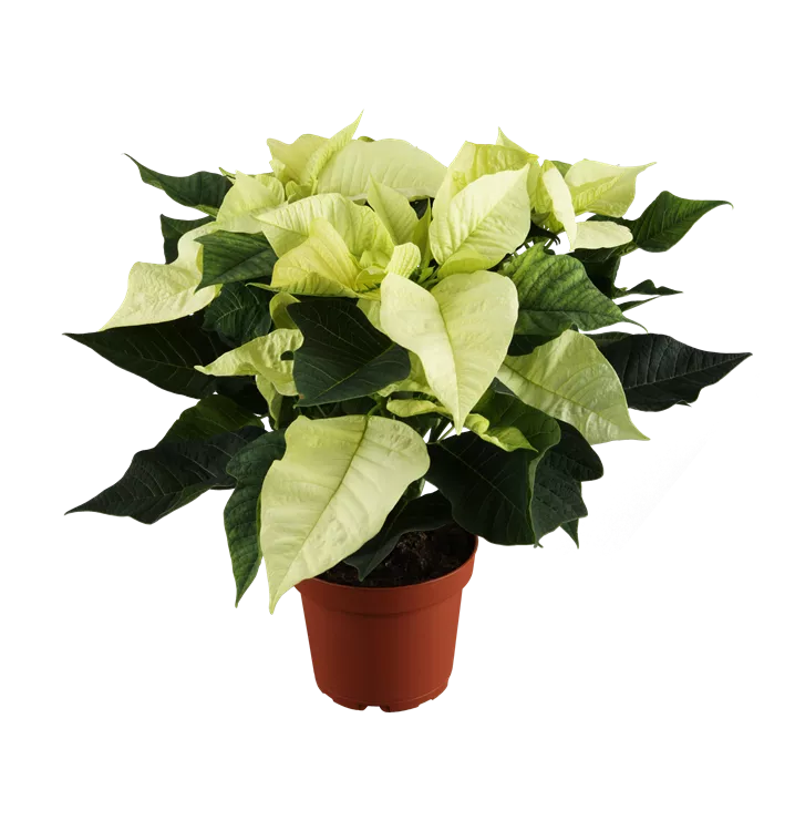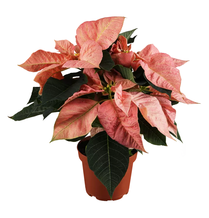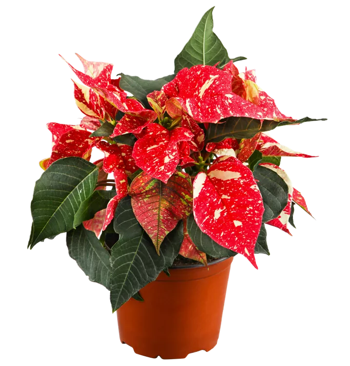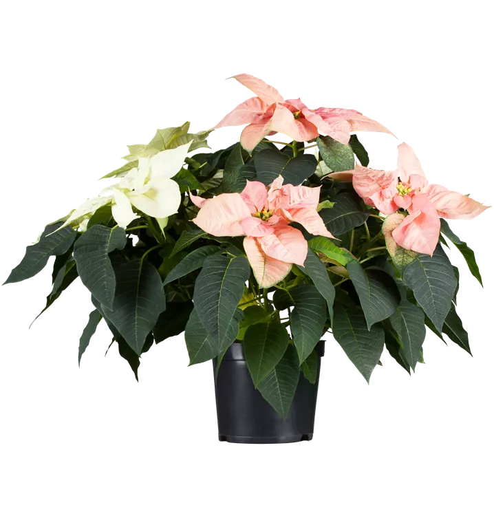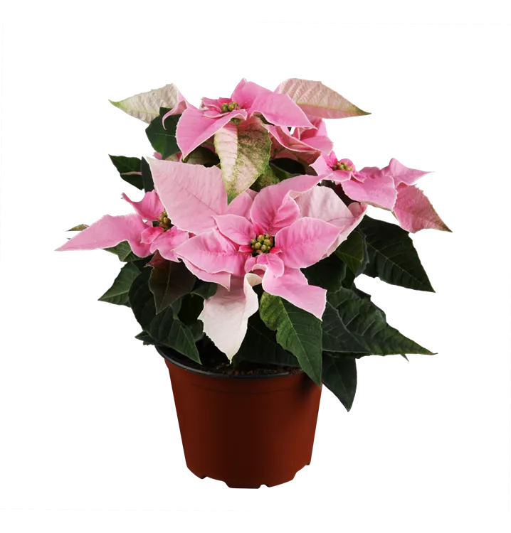 Der Weihnachtsstern (Euphorbia pulcherrima) ist eine rot, rosa oder weiß blühende Pflanze, die breit lanzettliche Blätter trägt. Diese buschige Pflanze gedeiht am besten an einem sonnigen Standort.