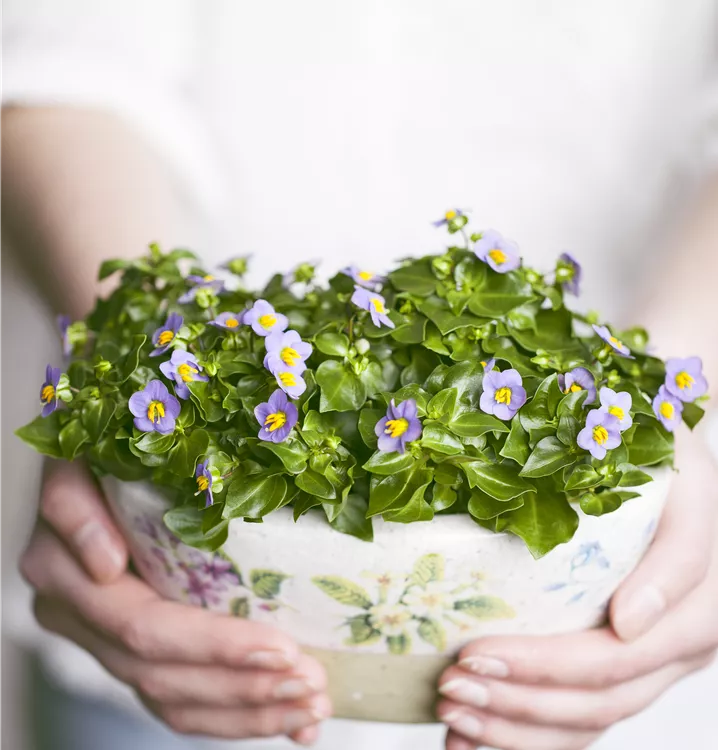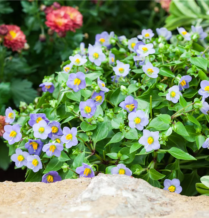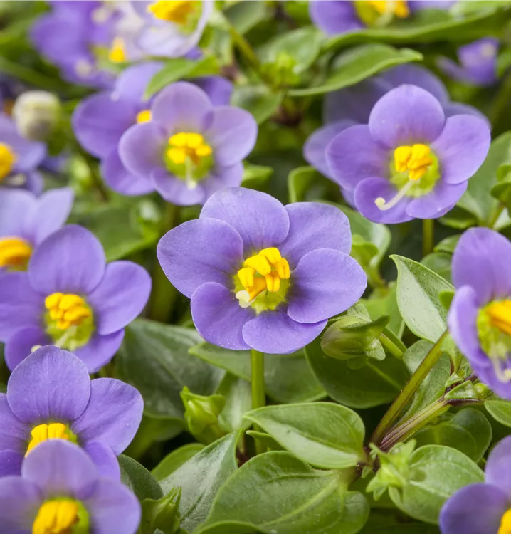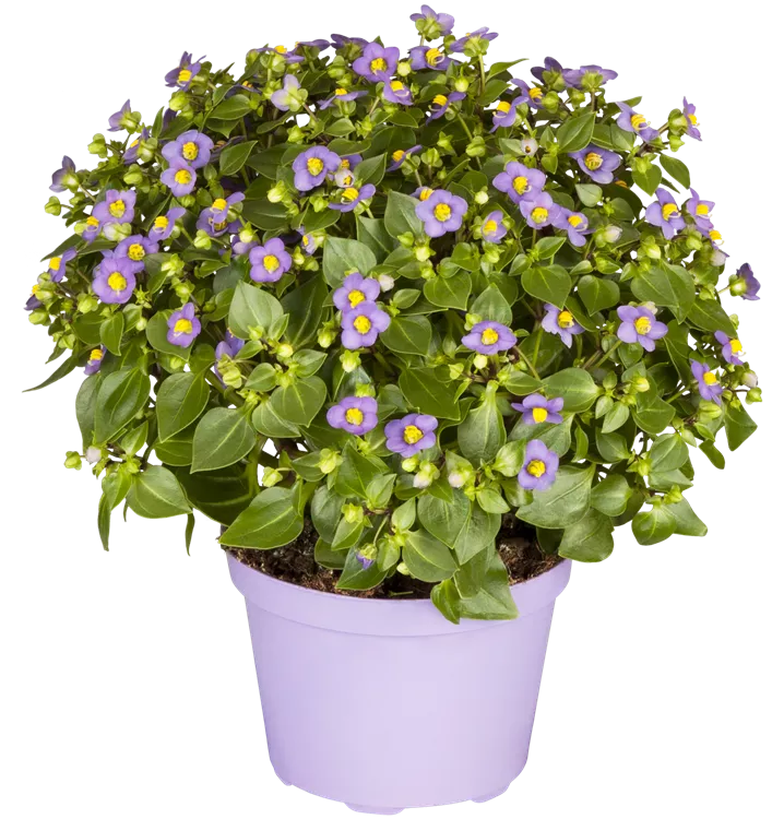 Das Blaue Lieschen (Exacum affine) ist eine beliebte Pflanze für den Balkon, die während der gesamten Saison unzählige blaue oder weiße Blüten bildet. Die glänzenden Blätter sind herzförmig. Ein sonniger bis halbschattiger Standort und ein durchlässiges Substrat werden bevorzugt. Mit seinem kompakten Wuchs passt das Blaue Lieschen besonders gut in Blumenampeln und hängende Pflanzkörbe.