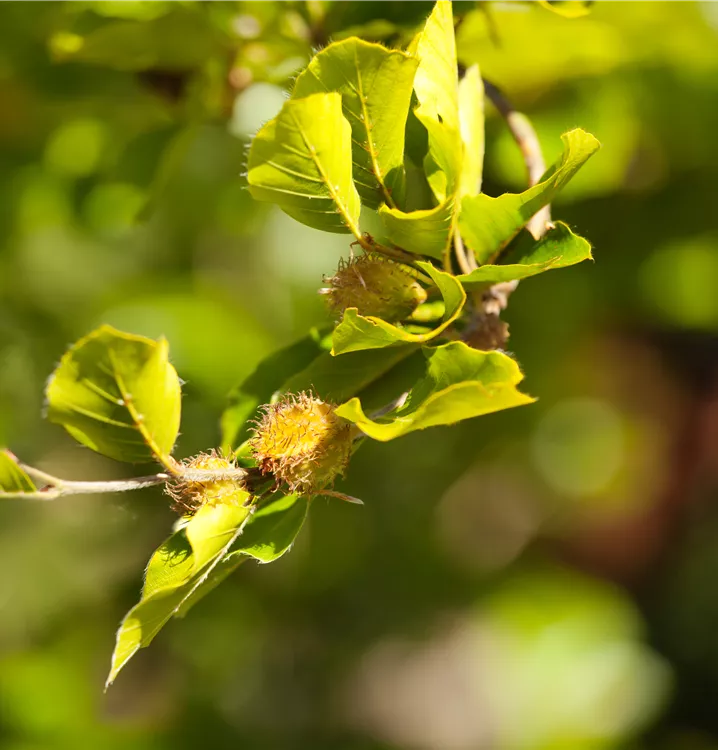 Die Rotbuche (Fagus sylvatica) ist ein aufrechter, breiter Großbaum, der unscheinbare Blüten hervorbringt. Sie erscheinen von April bis Mai. Aus diesen gehen ab September braune Früchte hervor. Zudem trägt die Rotbuche, eiförmige, mittelgrüne Blätter. Ihre Rinde ist silbergrau, glatt. An einem sonnigen bis halbschattigen Standort mit durchlässigem, humosem, nährstoffreichem Boden erreicht sie gewöhnlich eine Höhe von ca. 30 m und wird ca. 15 m breit.