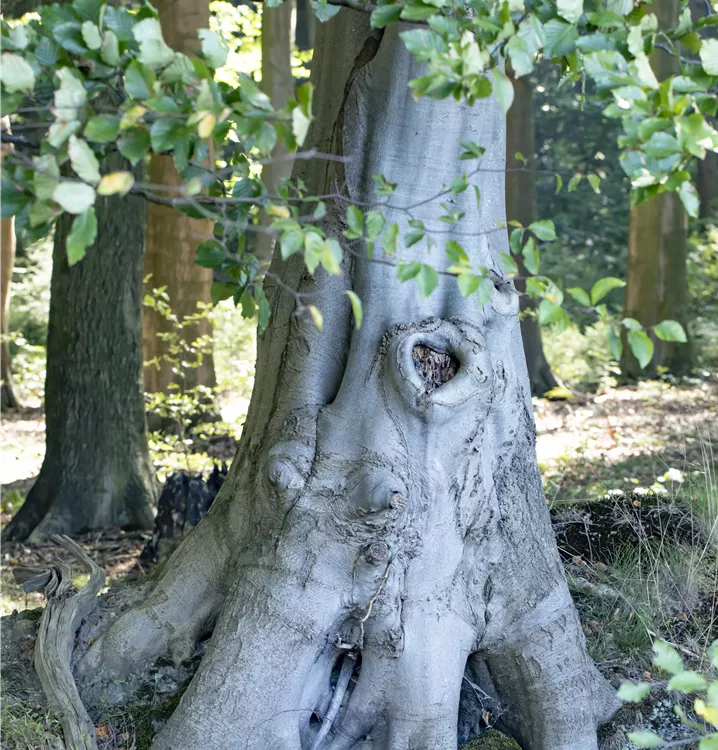 Fagus sylvatica ist ein Herzwurzler und bildet, je nach Boden, fein verzweigte Wurzeln.
