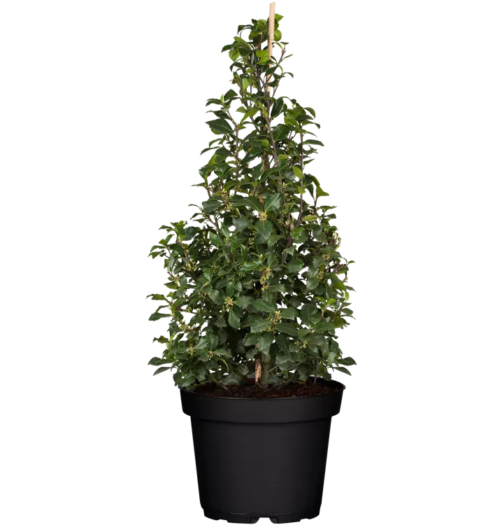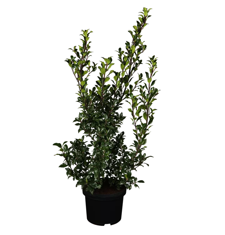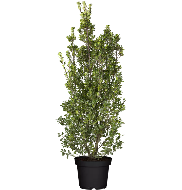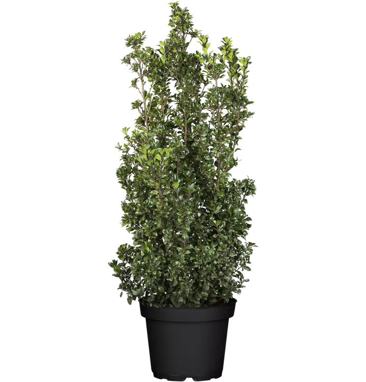 Stechpalme 'Heckenstar'(s) ist ein aufrecht und säulenförmig wachsender Großstrauch. Sie erreicht gewöhnlich eine Höhe von 3 - 5 m und wird ca. 1 - 2 m breit.