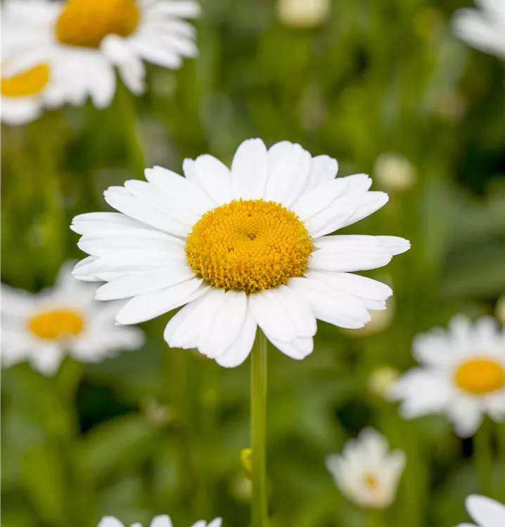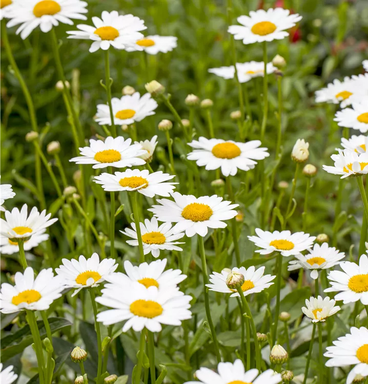 Die Großblumige Garten-Margerite (Leucanthemum x superbum) ist eine aufrechte Staude, die von Juli bis August weiße Blüten mit einem angenehmen Duft bildet. Ihre lanzettlichen, Blätter sind dunkelgrün. An einem sonnigen Standort mit durchlässigem, nährstoffreichem Boden erreicht sie gewöhnlich eine Höhe von ca. 1 m und wird ca. 50 cm breit. Die Großblumige Garten-Margerite ist gut frostverträglich.