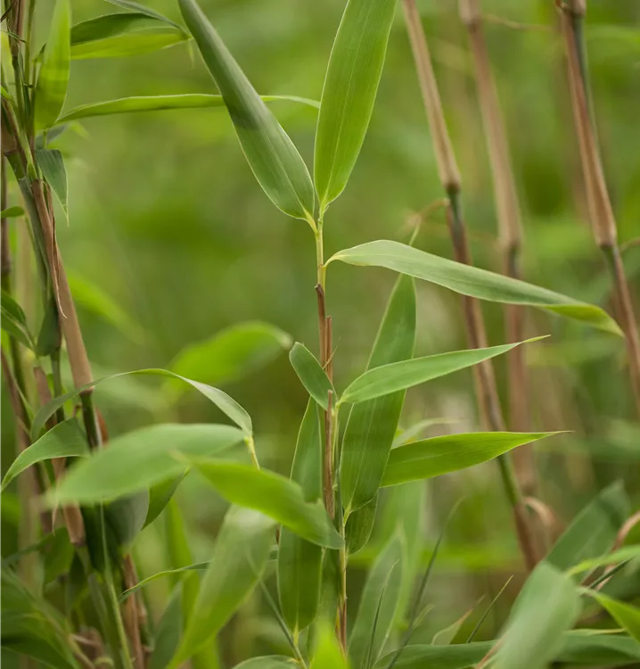 Der Gartenbambus 'Super Jumbo'(s) (Fargesia murielae) ist mit seiner hellgrünen Blattfärbung ein dekoratives Gestaltungselement im Garten. Das Besondere an ihm ist, nebst der aufrechten Form, dass er keine Rhizomsperre braucht! Bevorzugt werden sonnige bis halbschattige Standorte mit einem durchlässigen und schwachsauren Boden. Bei günstigen Bedingungen erreicht dieser winterharte Bambus eine Höhe von ca. 4 m und wird bis zu 3 m breit.