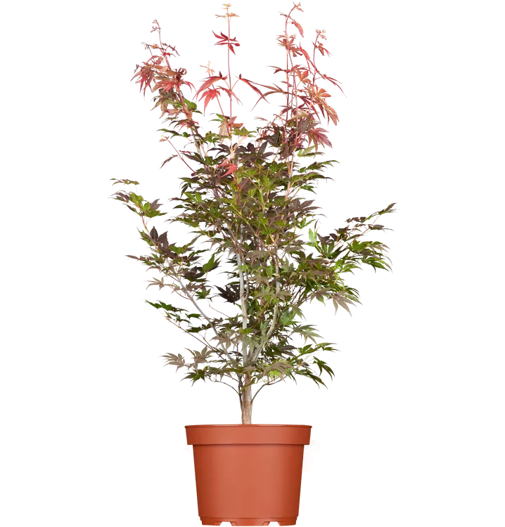 Acer palmatum 'Atropurpureum' ist ein Flachwurzler und bildet, je nach Boden, fein verzweigte Wurzeln.