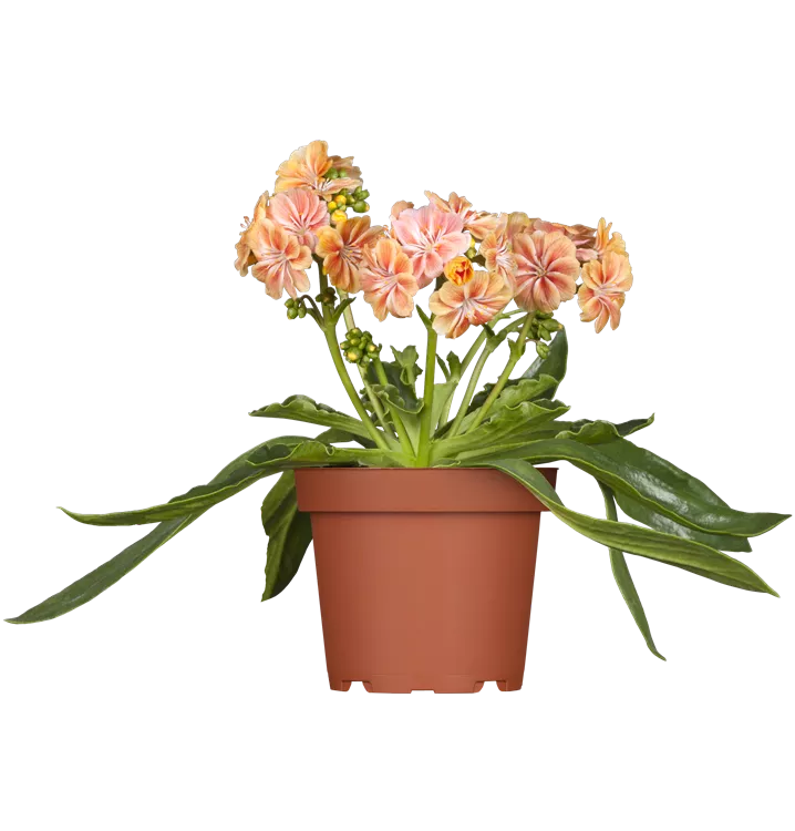 Die Gewöhnliche Bitterwurz (Lewisia cotyledon) ist eine aufrechte, wintergrüne Staude, die von Mai bis August rosafarbene, schalenförmige Blüten bildet. Ihre matten, lanzettlichen, Blätter sind grün. An einem sonnigen bis halbschattigen Standort mit durchlässigem, kalkfreiem Boden erreicht sie gewöhnlich eine Höhe von ca. 30 cm und wird ca. 30 cm breit. Die Gewöhnliche Bitterwurz ist gut frostverträglich.