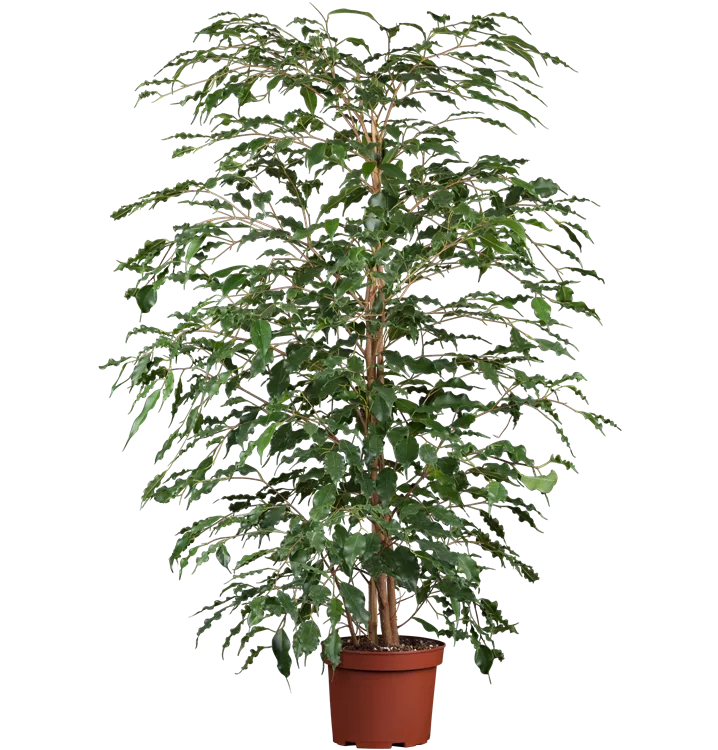 Die Birken-Feige (Ficus benjamina) trägt dunkelgrüne, glänzende Blätter. Diese aufrechte und verzweigte Pflanze gedeiht am besten an einem sonnigen bis halbschattigen Standort.
