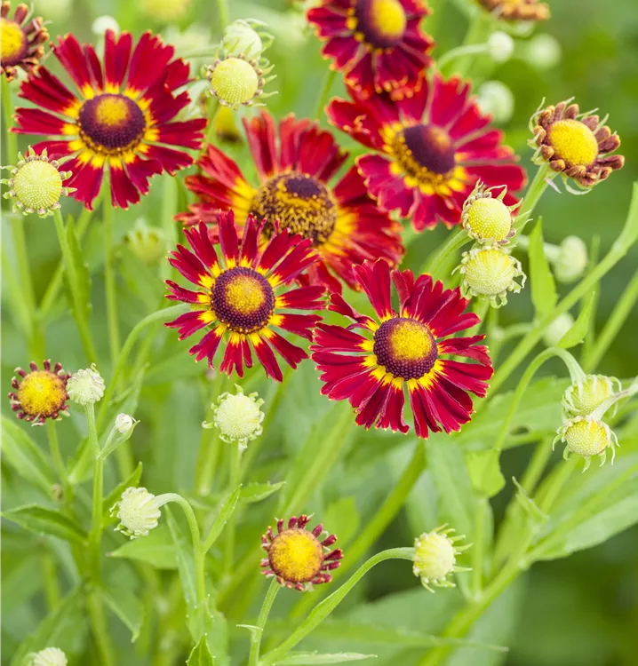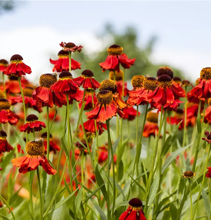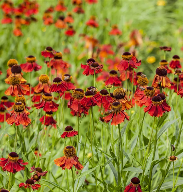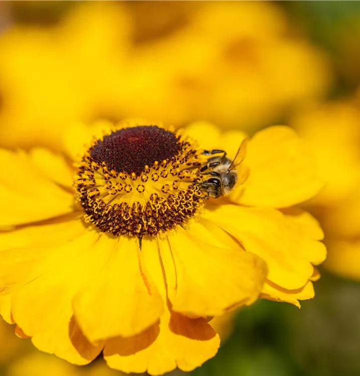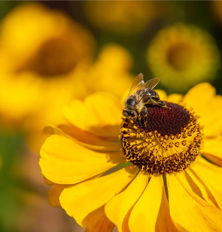 Helenium bildet körbchenartige, gelbe Blüten ab Juli.