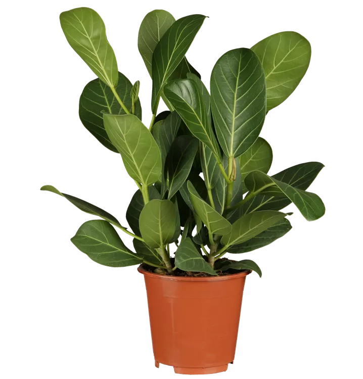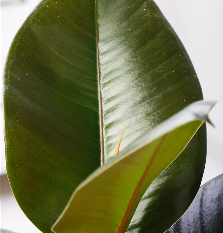 Die immergrünen Blätter des Gummibaums sind dunkelgrün, glänzend.