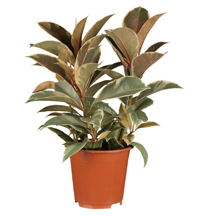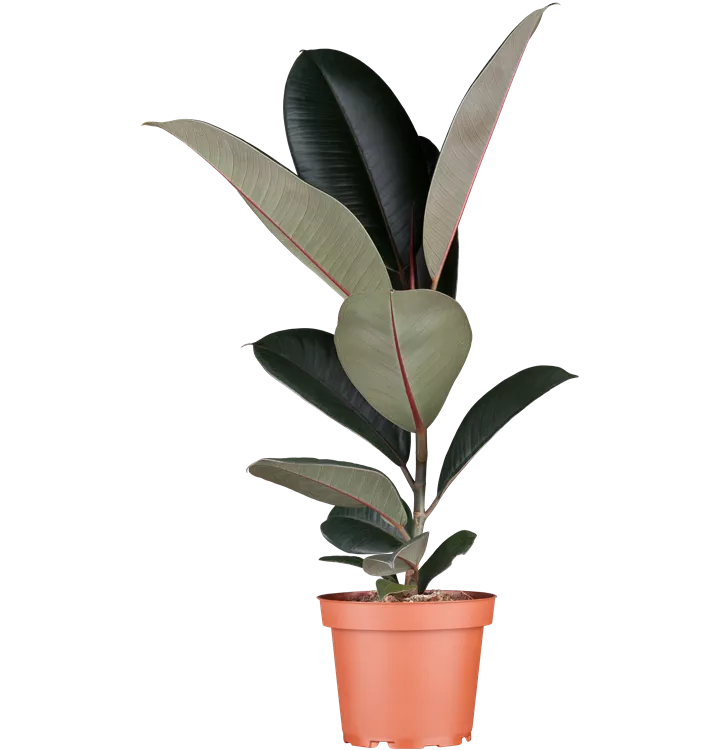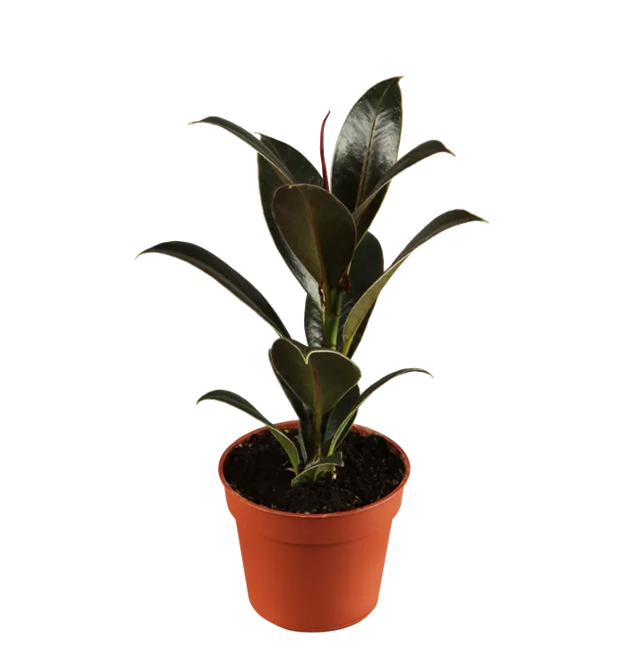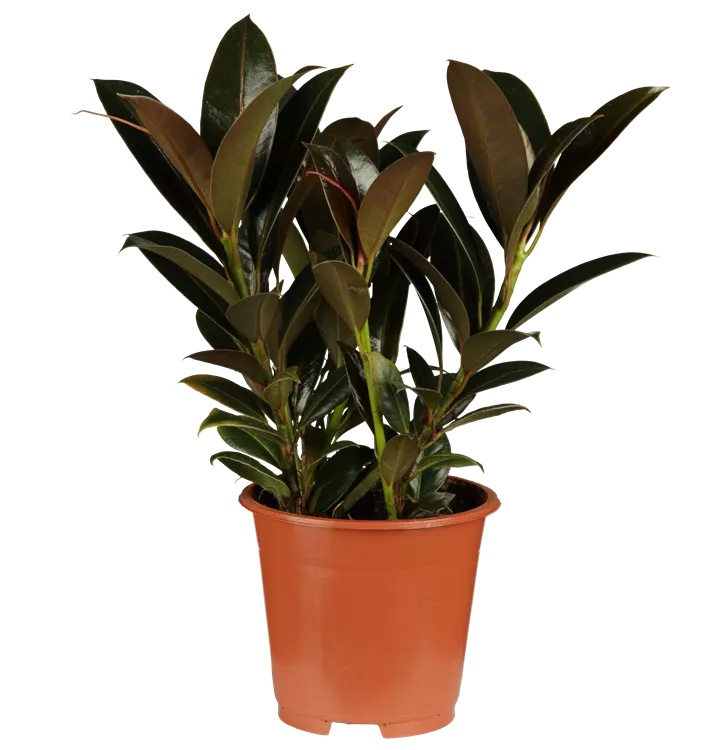 Der Gummibaum (Ficus elastica) trägt dunkelgrüne, glänzende Blätter. Diese aufrechte und verzweigte Pflanze gedeiht am besten an einem halbschattigen Standort.