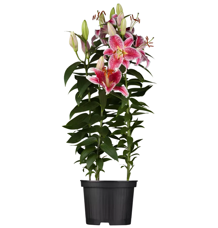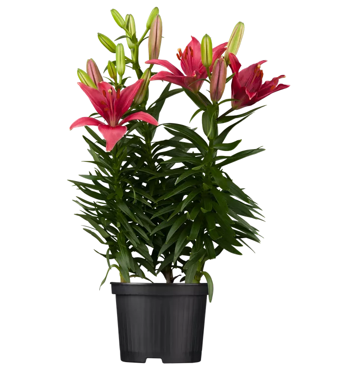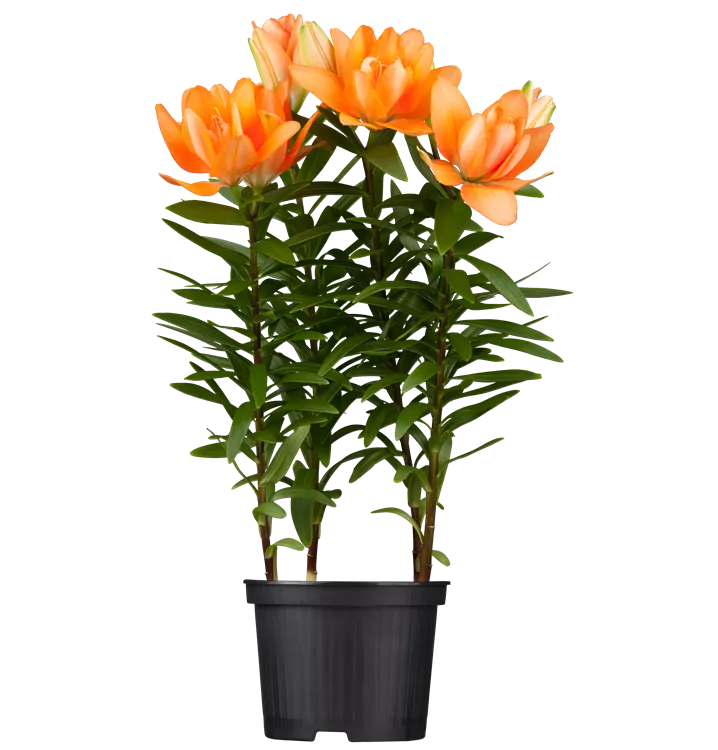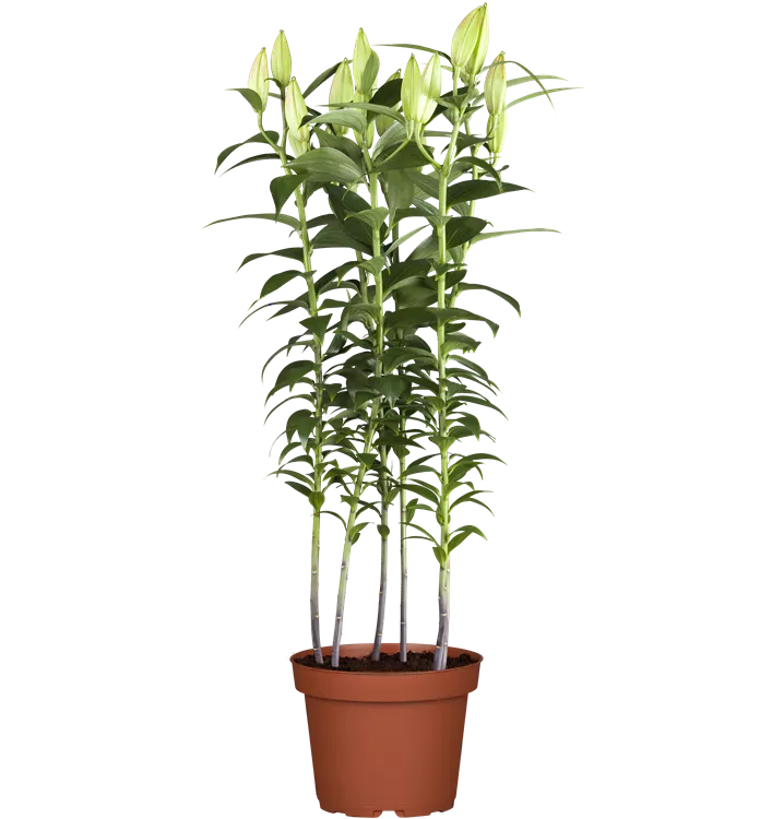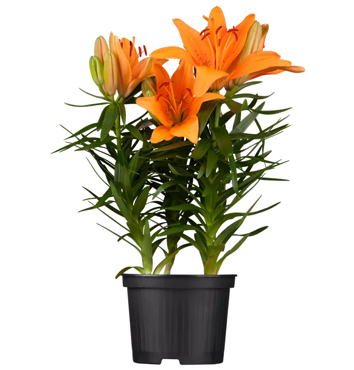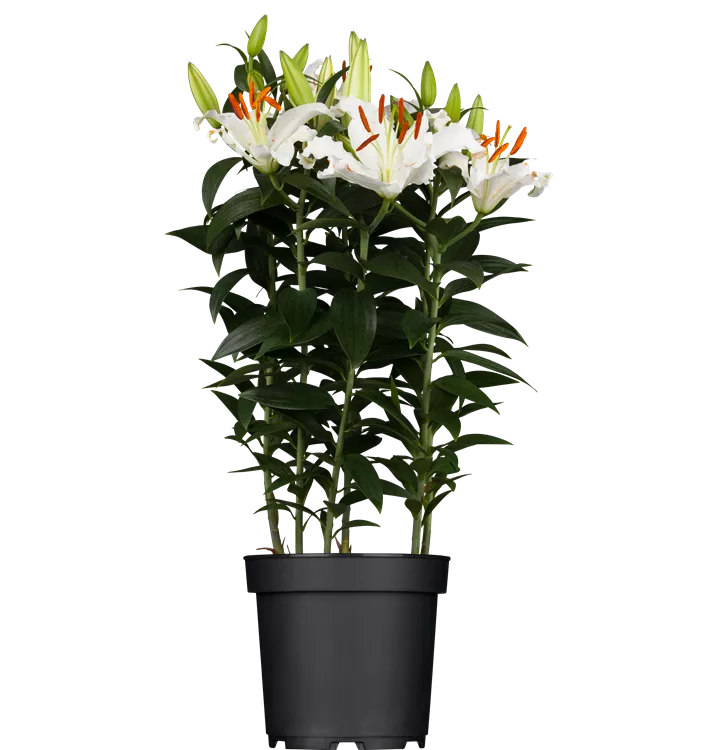 Die Lilie (Lilium) bringt ansehnliche, weiße, gelbe, orangefarbene, rote, angenehm duftende Blüten von Mai bis September hervor. Bevorzugt wird ein durchlässiger, humoser Boden in sonniger bis halbschattiger Lage. Die aufrechte Pflanze erreicht gewöhnlich eine Höhe von 0,4 - 1,8 m und wird bis zu 15 cm breit.