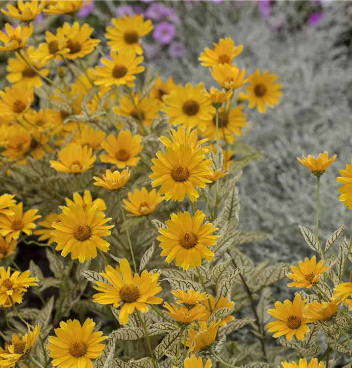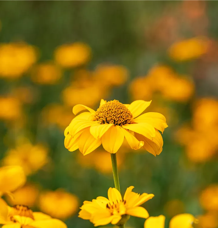 Heliopsis helianthoides bildet gelbe Blüten ab August.
